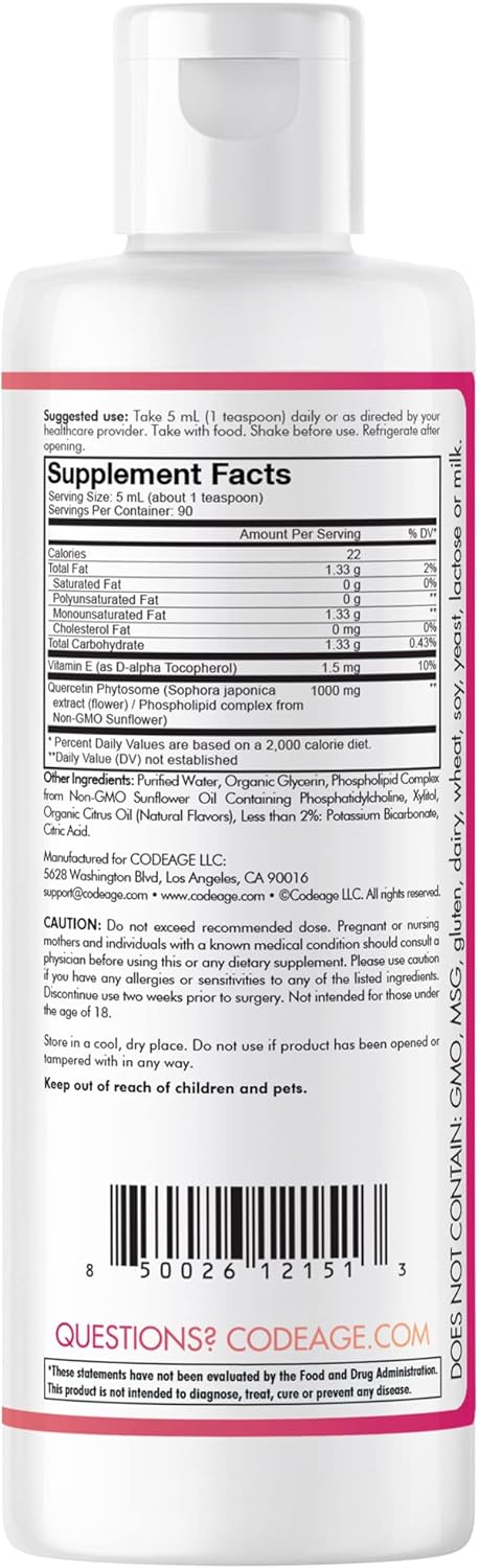 Liposomal Quercetin: Codeage Nanofood Liposomal Quercetin Phytosome features a proprietary quercetin blend and comes with a liposomal delivery in a delicious pineapple tangerine flavor.