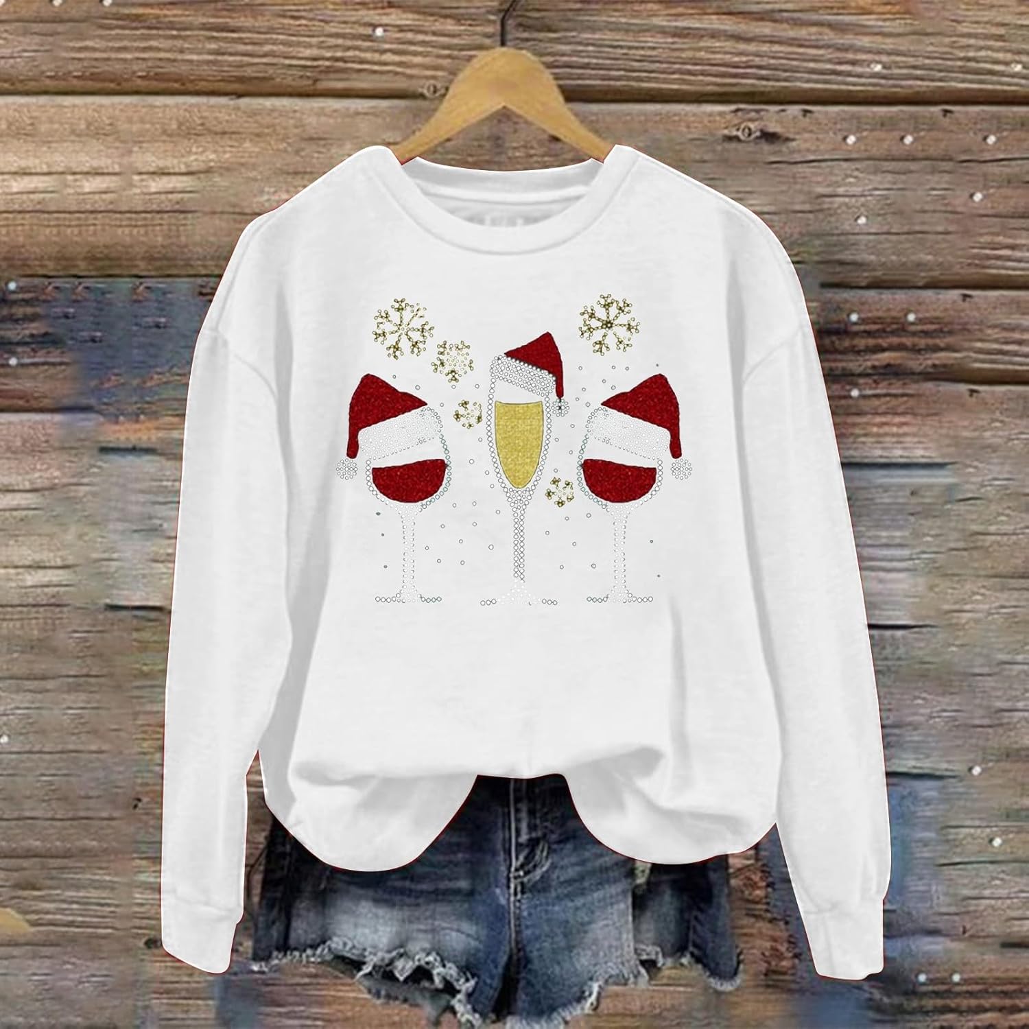 Be the first to review “Color Top Women’s Christmas Wine Glass Printed Long Sleeve Crew Neck Hoodie”