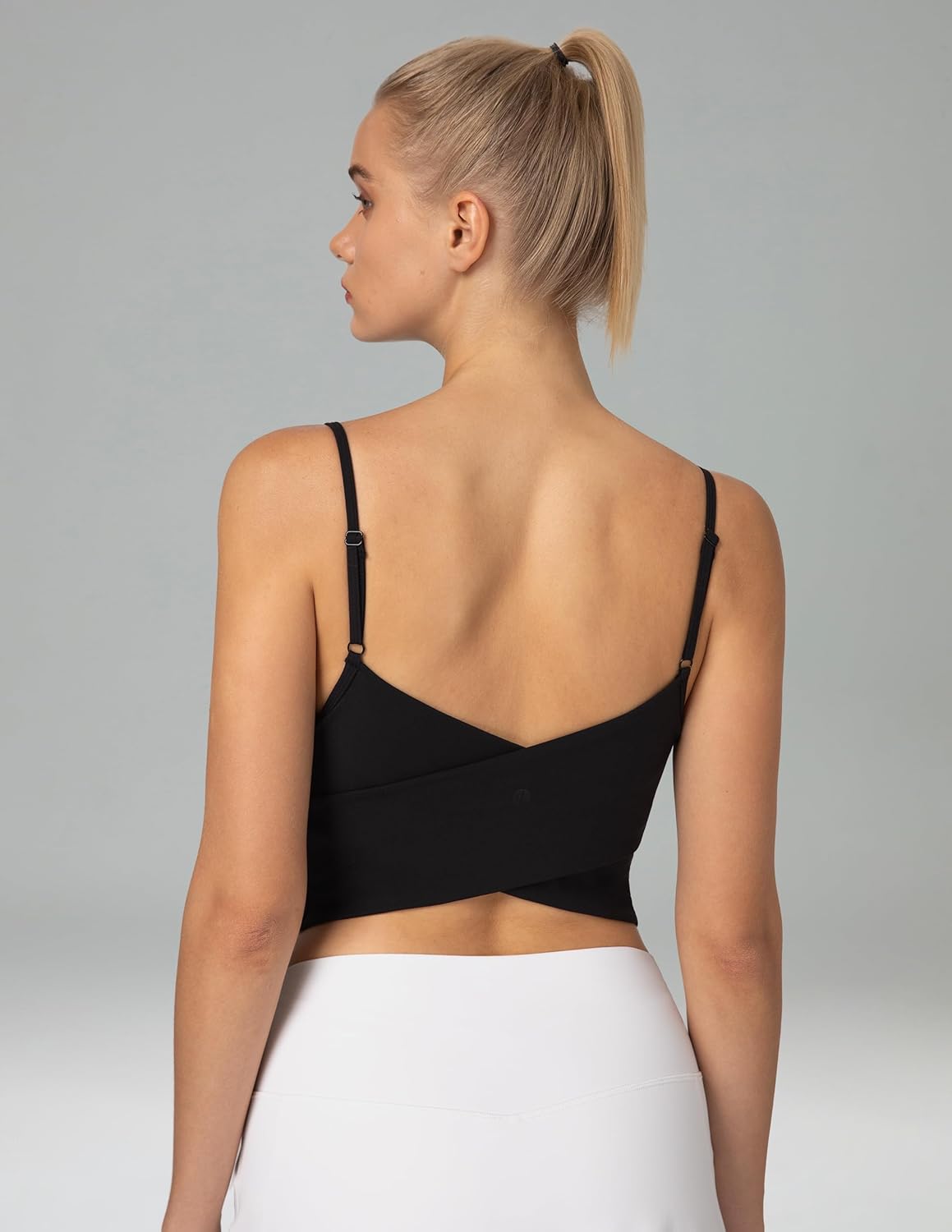 Colorfulkoala Women’s Dreamlux Crop Tank Tops with Built in Bra Adjustable Spaghetti Strap Workout Yoga Camisole