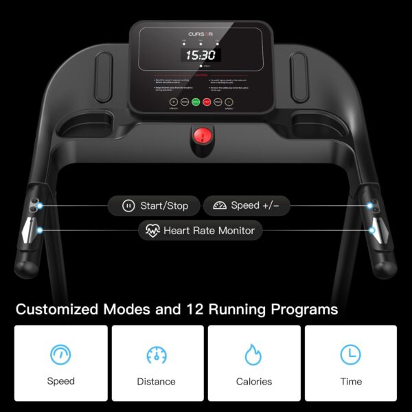 QUIET BRUSHLESS MOTOR – CURSOR FITNESS brushless motor with max 2.5 HP provides efficient, reliable, and low-maintenance operation, while providing speeds of 7.5 MPH and emitting only 40-65 dB of noise, ensuring your workouts won’t disturb your downstairs or next-doors