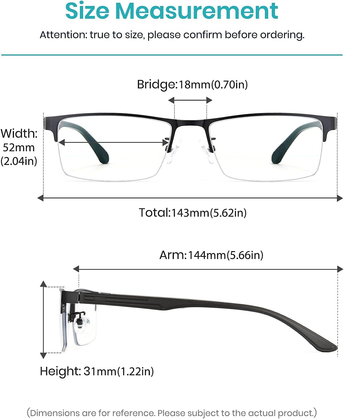 【GLASSES SIZE】Lens width: 2.04 inches; Lens height: 1.22 inches; Bridge: 0.7 inches; Arm: 5.66 inches