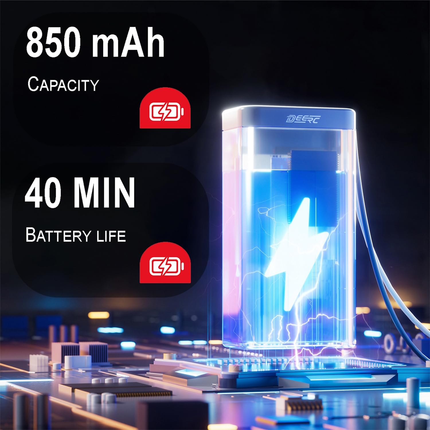 All-terrain Racing: Independent suspension design is introduced to both front and rear suspension on this high-speed RC car. The damped metal shocks facilitate themselves to increase or decrease the spring tension for the demands of desired traction and suspension travels. The four wheels are all packed with metal springs which gives support to unexpected dropping and the undulating nature of the ground. The harsh environment cannot stop your racing journey, drive the DEERC where you want!