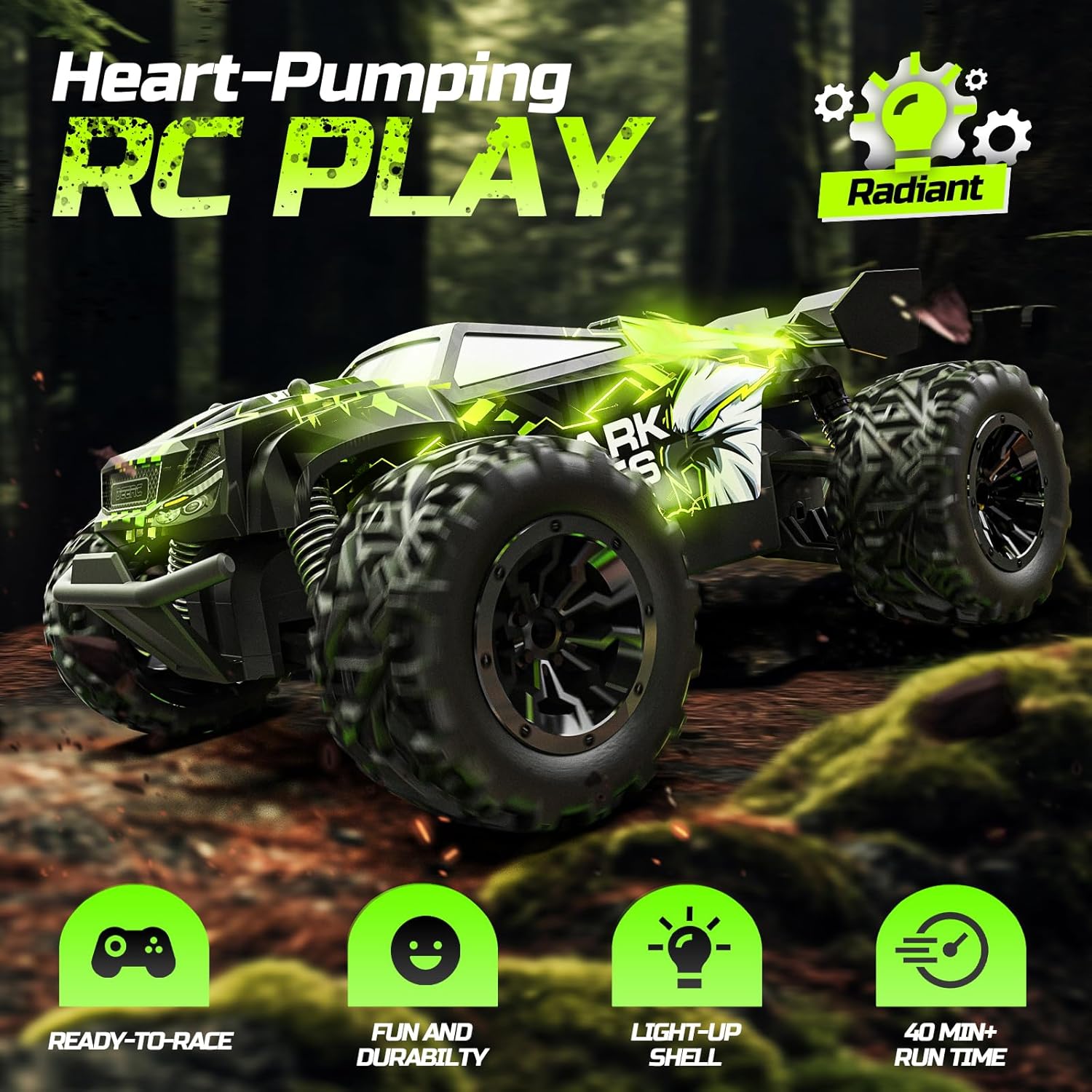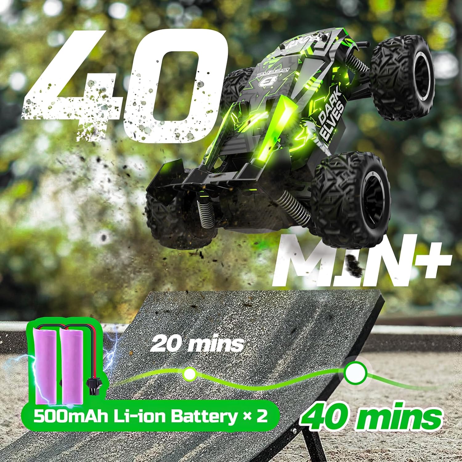 Distraction-free RC Racing Play – The ergonomically designed handheld remote control is equipped with an upgraded 2.4GHz radio control system, ensuring a stable signal within a 263-foot range and preventing interference from other RC vehicles. Invite your friends for a thrilling, disruption-free race!