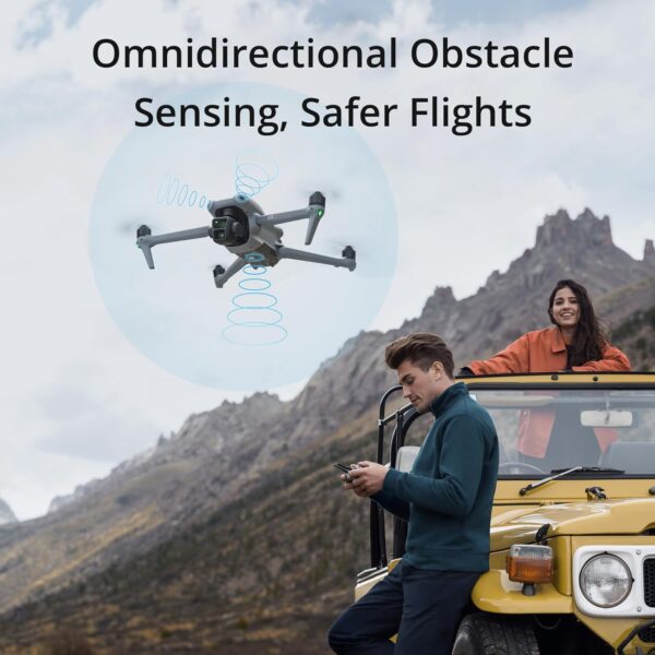 𝗘𝗻𝗵𝗮𝗻𝗰𝗲𝗱 𝗦𝗮𝗳𝗲𝘁𝘆, 𝗪𝗼𝗿𝗿𝘆-𝗙𝗿𝗲𝗲 𝗙𝗹𝘆𝗶𝗻𝗴 – Fly confidently with Air 3’s 𝗼𝗺𝗻𝗶𝗱𝗶𝗿𝗲𝗰𝘁𝗶𝗼𝗻𝗮𝗹 𝗼𝗯𝘀𝘁𝗮𝗰𝗹𝗲 𝘀𝗲𝗻𝘀𝗶𝗻𝗴. It ensures comprehensive protection even in challenging environments like forests.