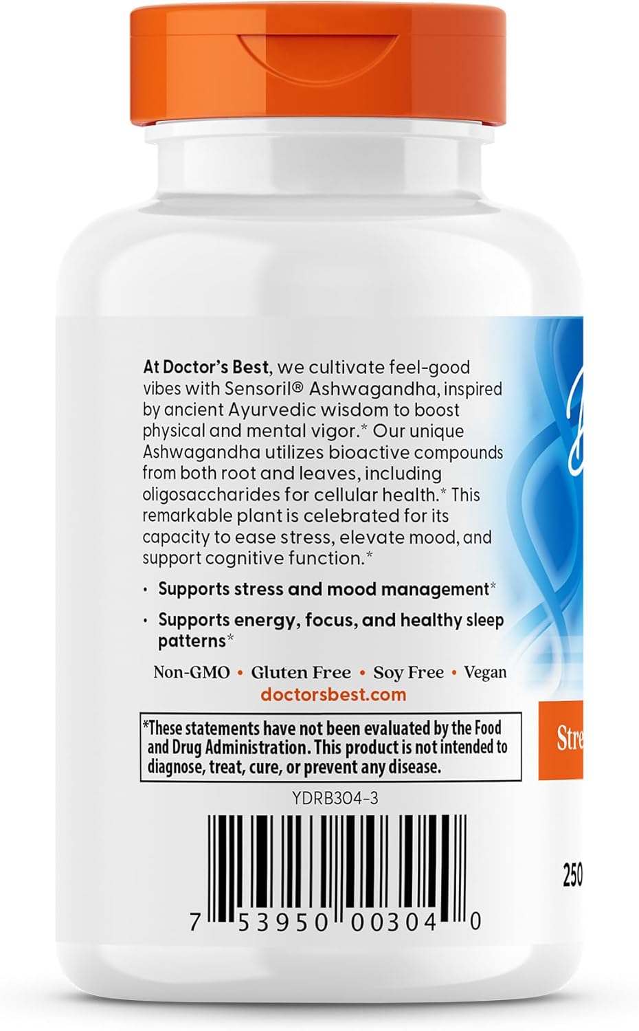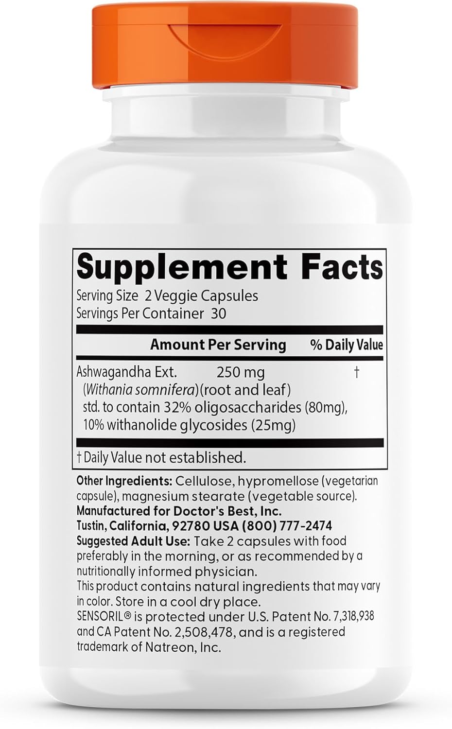DOCTOR’S BEST ASHWAGANDHA WITH SENSORIL – is scientifically prepared from the renowned Ayurvedic super plant Withania somnifera. Sensoril is a clinically proven Ashwagandha extract, produced without using chemical solvents and contains an excellent profile of bioactive withanolide glycosides. Ashwagandha (Withania somnifera) with Sensoril’s potent levels of glycosides is effective for stress, memory focus and other cognitive functions.