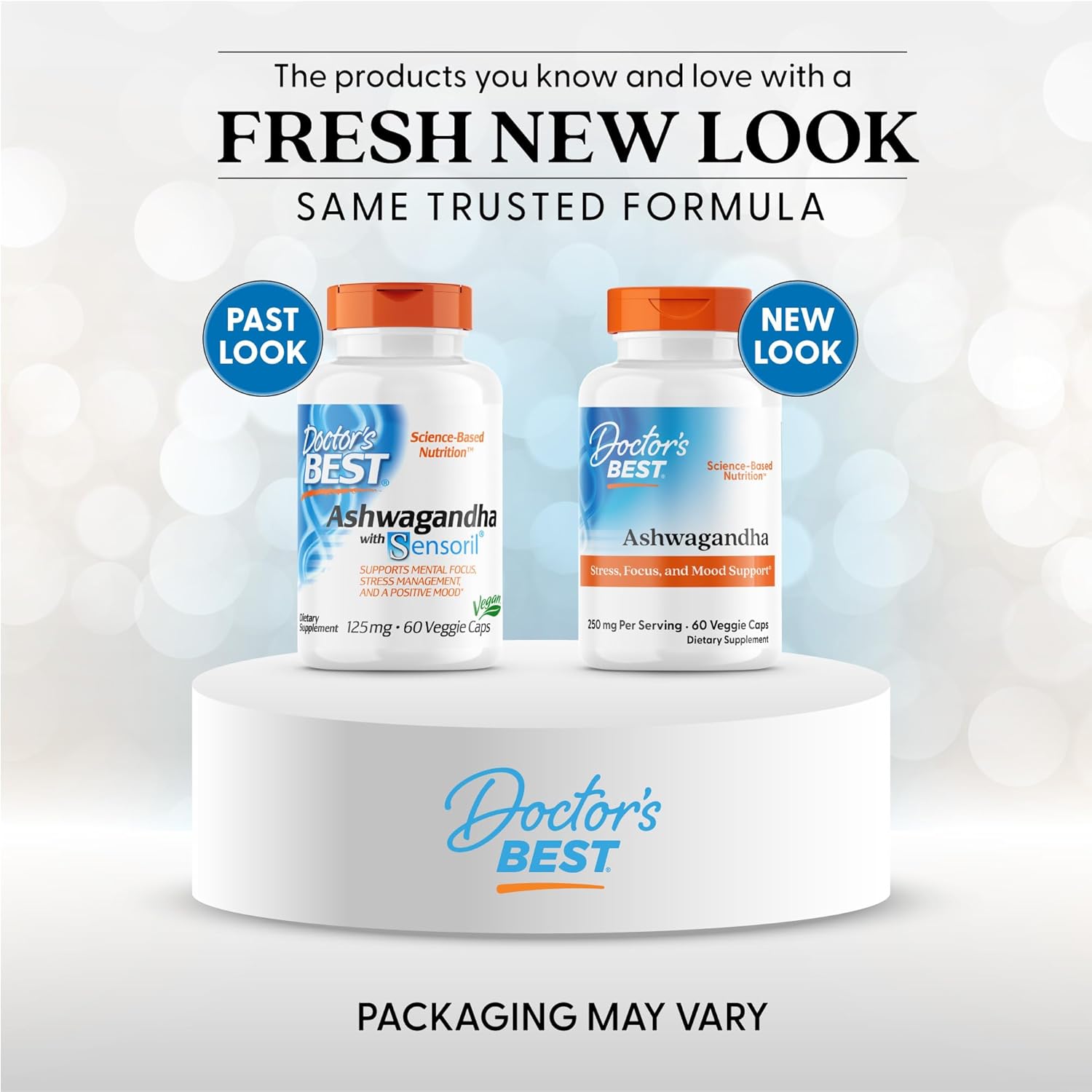 Doctor’s Best Ashwagandha with Sensoril, Ayurvedic Herb, Standardized Withania somnifera Extract, Clinically Proven to Support Mental Focus, Cardiovascular Health & Healthy Energy, 125mg, 60 Count