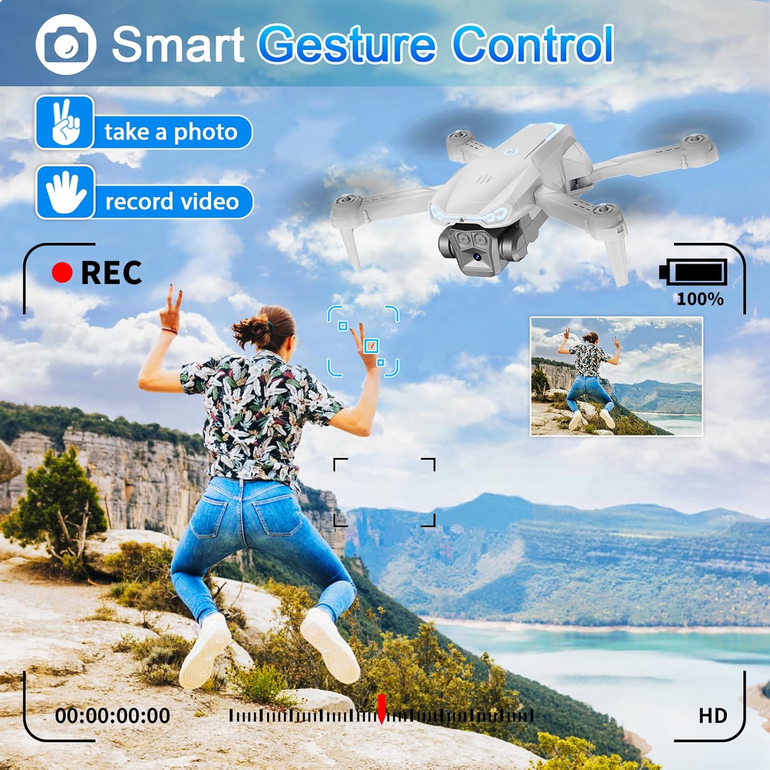 Just gesture with your palm, and the drone will automatically start recording, giving more moving videos for you.