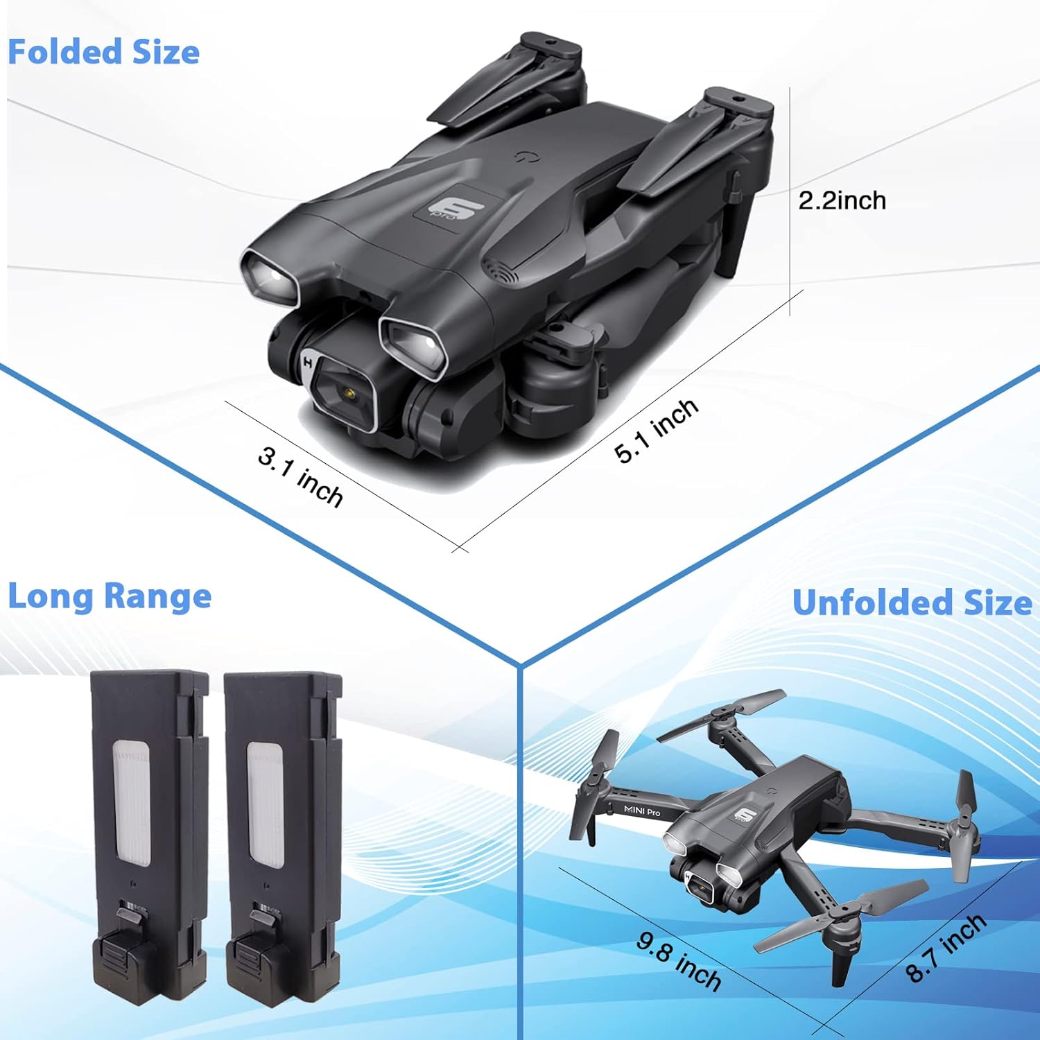 【 26 Mins Flight Time & Safe Design 】– Enjoy up to 26 minutes of flight time with two modular batteries. Upgraded charging cable uses imported chips for overvoltage protection to prevent accidents caused by incorrect charging. The RC quadcopter has protective propeller guards to ensure safe flight for you. High quality ABS material and emergency stop function to free your worries of a drop. When in low battery, the lights of the drone continue to flash, you can operate it return to avoid loss.