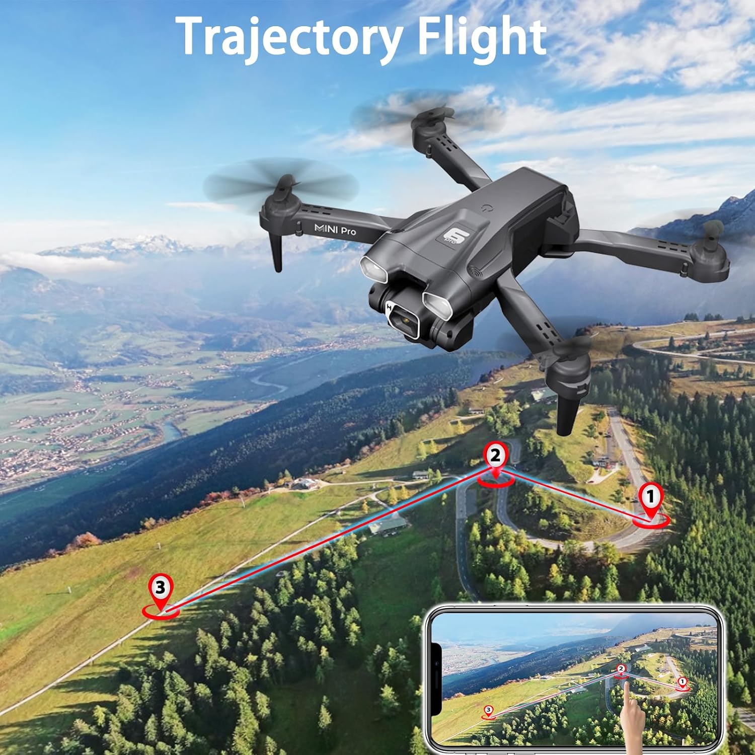 1080P HD Camera helps to capture high-quality video and clear aerial photos. FPV Wi-Fi Transmission, for the high-quality real-time image transmission, you can share the incredible scenery to friends.