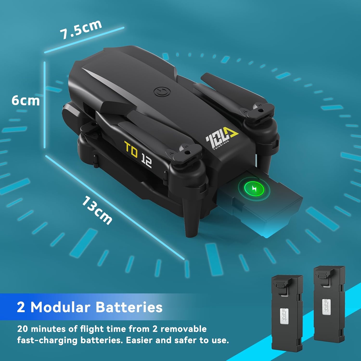 2 Modular Batteries: Drone for beginners comes with 2 x 3.7V 1200mAh modular batteries to enjoy a longer flying experience. Each battery lasts approximately 10 minutes, providing a total of 20 minutes of flight time from both batteries