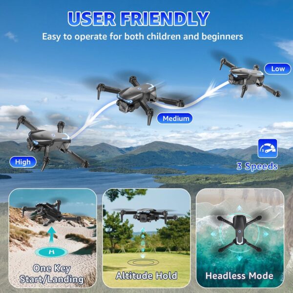 Best Gift Choice: The drone has a cool appearance design, three camera appearance. Multiple ways to play, simple and easy to operate, it is the best gift for drone lovers, and curious and exploratory adults and kids!