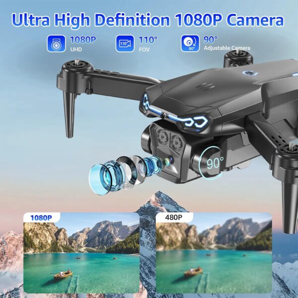 HD 1080P Camera: The drone features a 90°adjustable lens, a 1080P high-definition WIFI camera, and FPV transmission, allowing you to seamlessly view real-time footage captured by the drone in the sky on your phone.