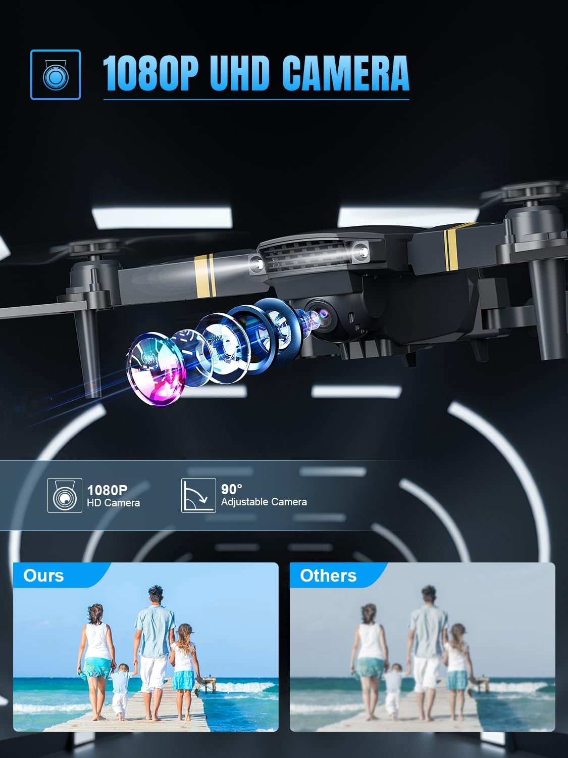 Drones with Camera for Adults Beginners Kids, Foldable E58 Drone with 1080P HD Camera, RC Quadcopter – FPV Live Video, Altitude Hold, Headless Mode, One Key Take Off/Landing, APP Control