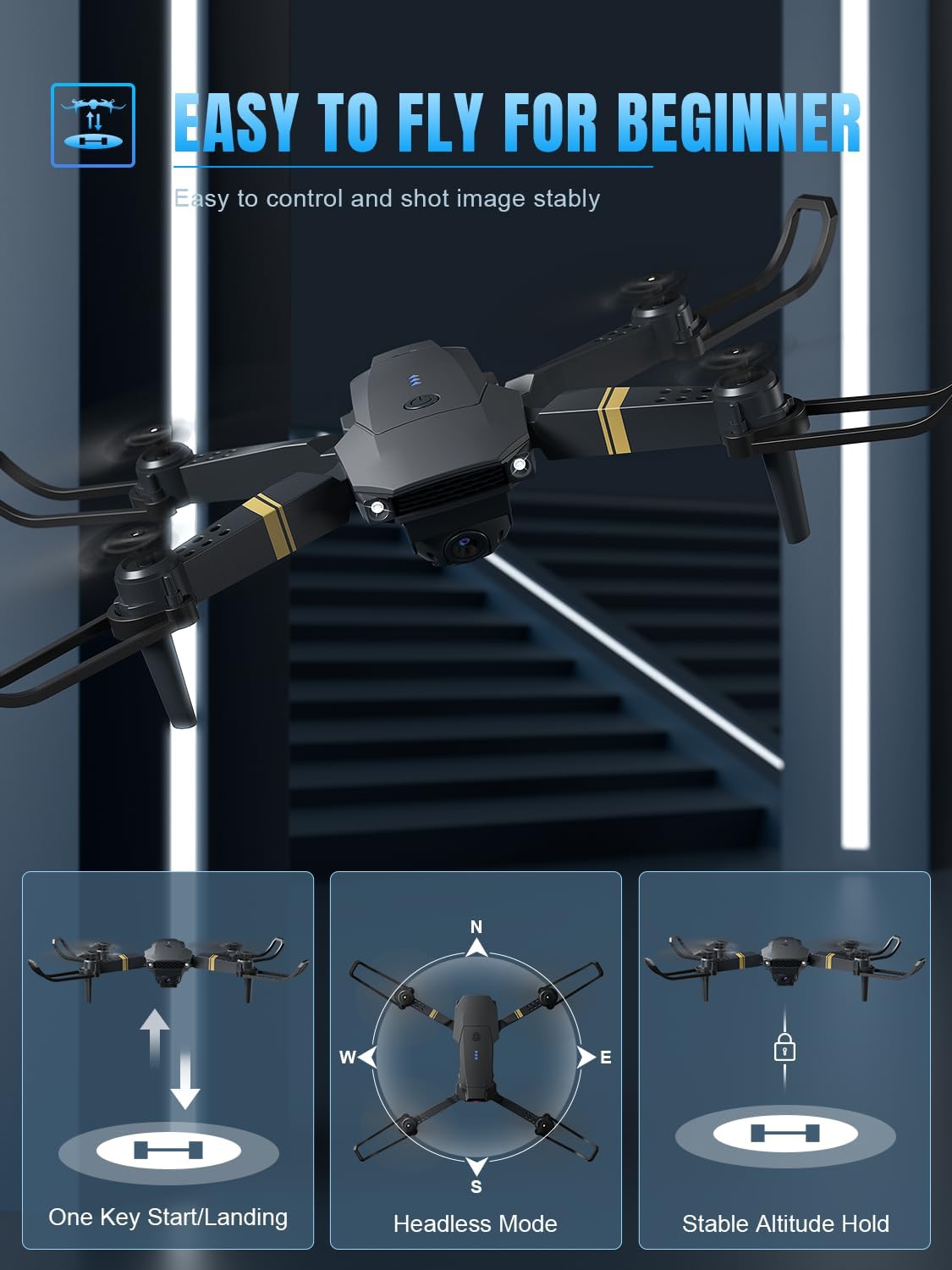 ➤【 Multifunctional Drone 】One key start/landing, Altitude Hold, Emergency Stop, Headless Mode, 3D flip, 3 speeds adjustment functions, adapts to all experience levels players and even for kids and beginners. The E58 Drone includes the new 3D rolling special effects and can be quite the surprise!