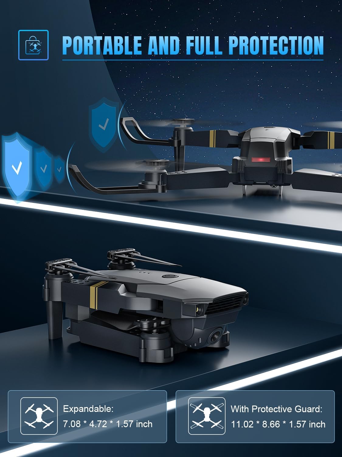 ➤【Portable & Safe】Thanks to the foldable design, the E58 drone can be easily stored in a handbag for outdoor carrying. The drone arm can be replaced. When the motor or drone arm is damaged, just replace the drone arm and it can fly again. In addition, the drone is equipped with 4 propeller guards that fully protects the propellers and improves flight safety.
