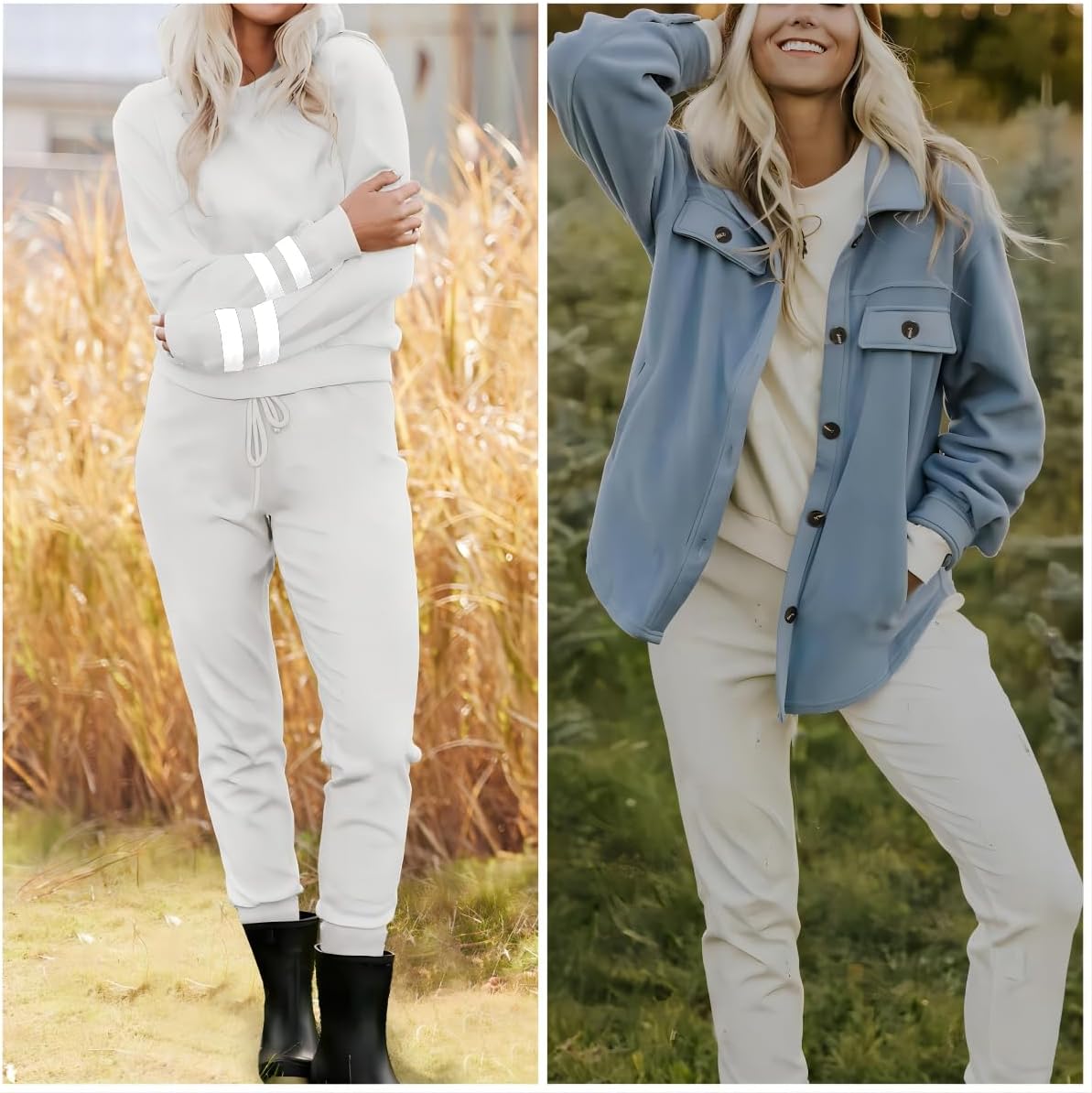 1 Fashion Sweatsuit 2 Pink Lounge Sets 3 Blue Pajamas Set 4 Khaki Tracksuit Set