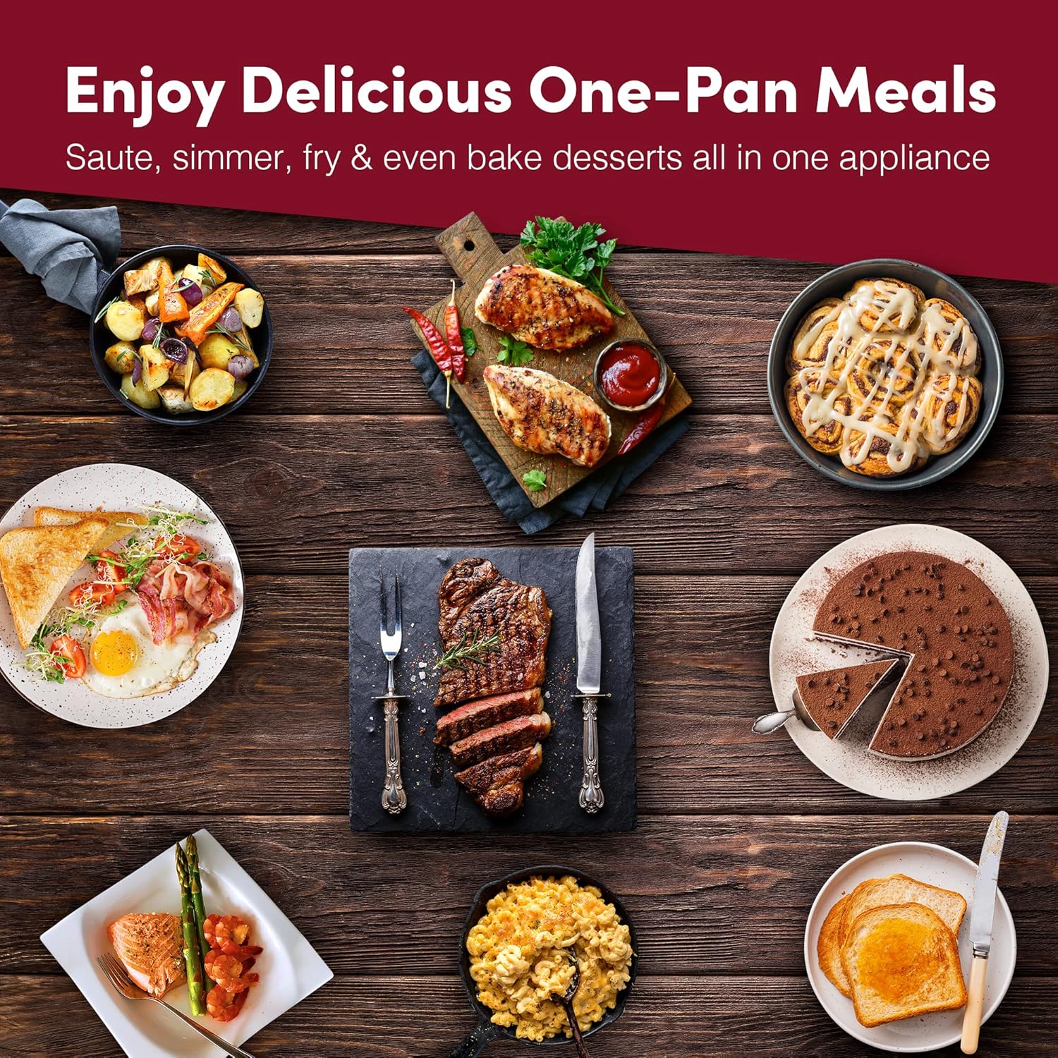 LOCK IN FLAVORS and moisture and view cooking progress with the vented tempered glass lid. Extra Large 12” x 12” pan dimensions let you cook entire meals for the whole family.
