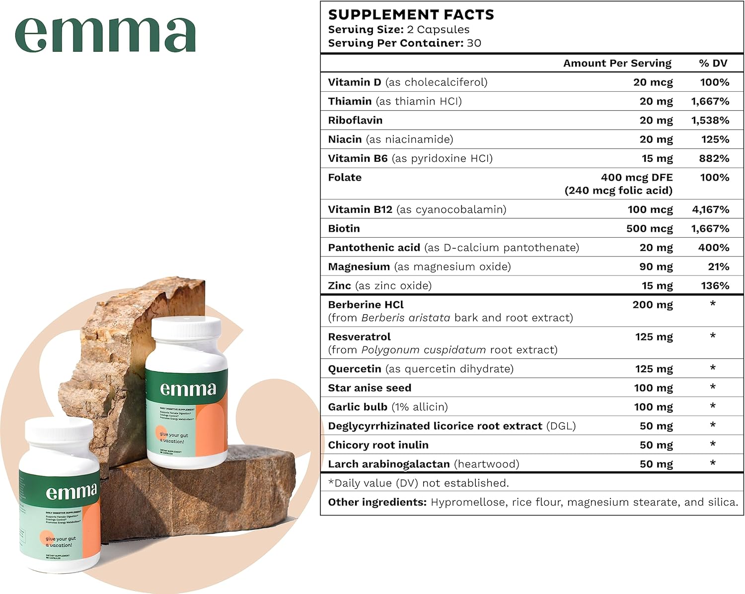 Emma Doctors Endorsed Gut Health Supplement – 60 Capsules – Relief from Gas and Bloating, Repairs Leaky Gut with Magnesium, Berberine, Vitamin D, Quercetin & More – Gut Health & Colon Cleanse Formula