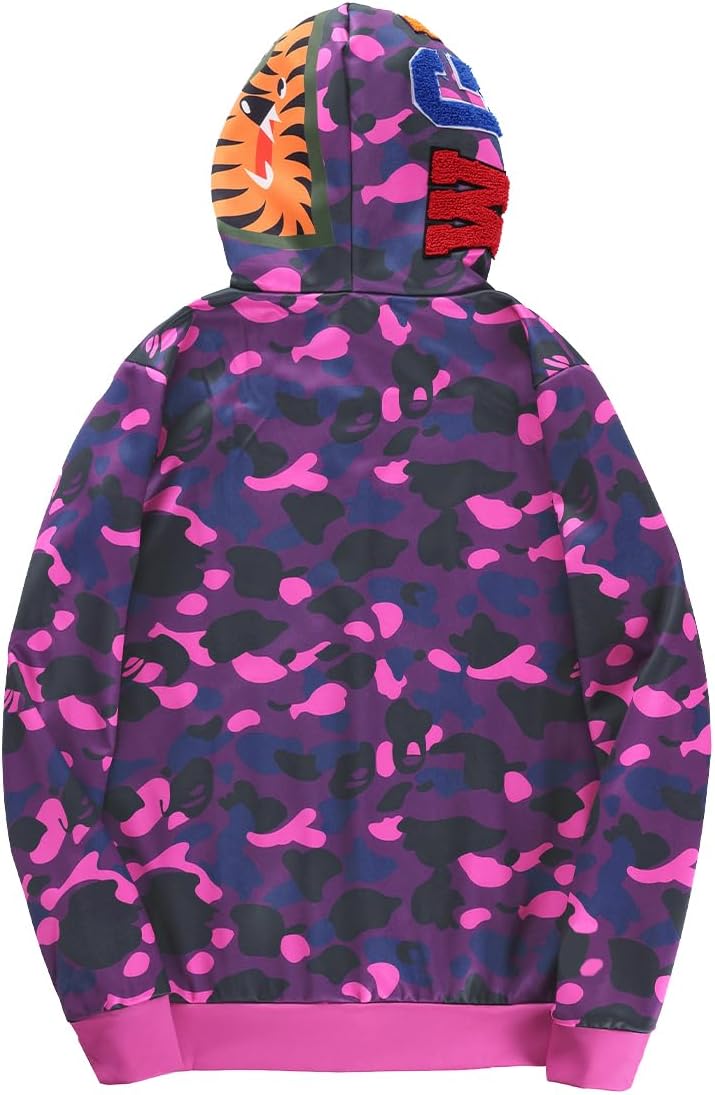 EUDOLAH Camo Hoodie Shark Print Trendy Cotton Casual Loose Zip Up Hoodie Mens Long Sleeve Jacket