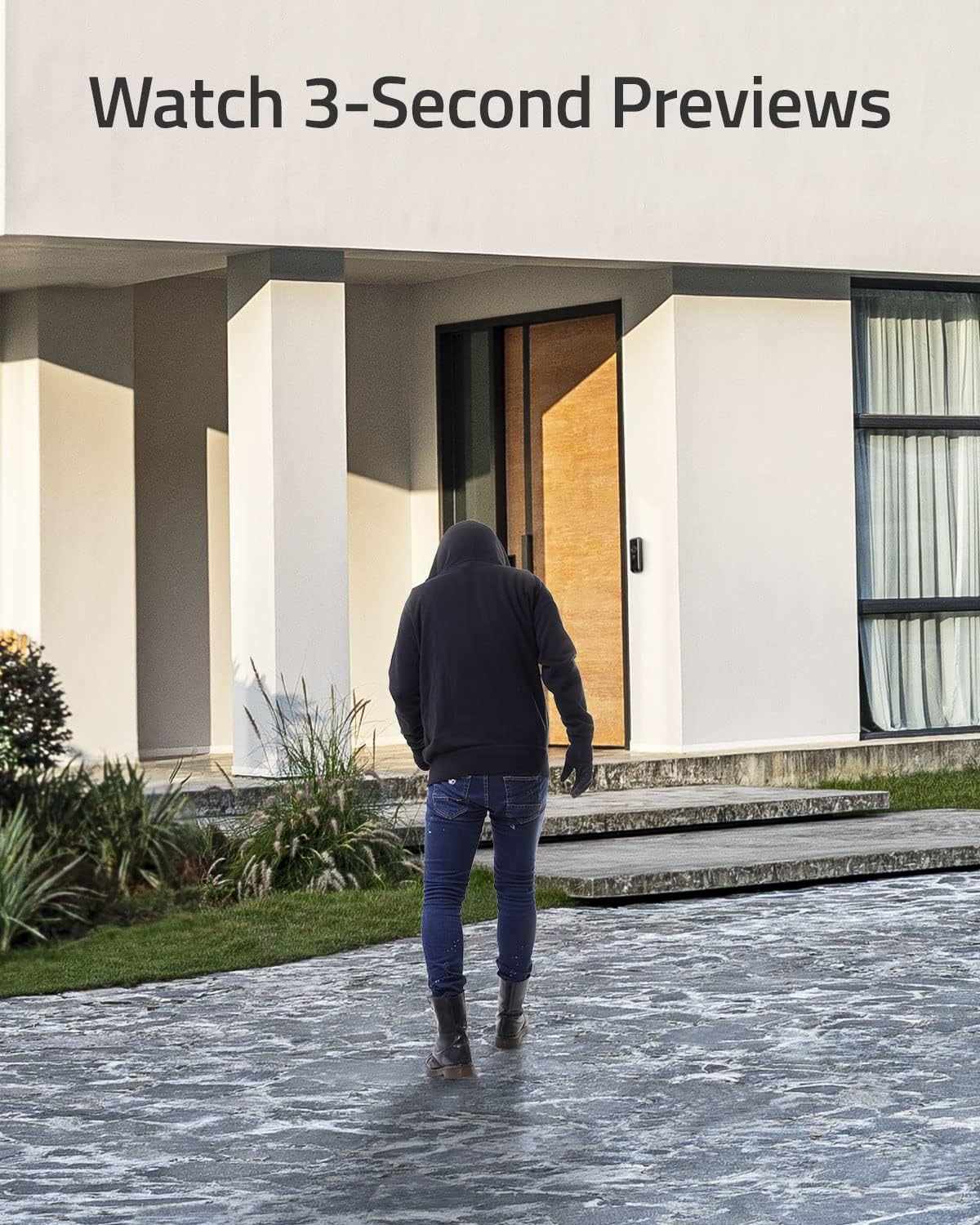 3-Second Preview Videos. See what triggered a recording, so you know how visitors approached your door and what they were doing.