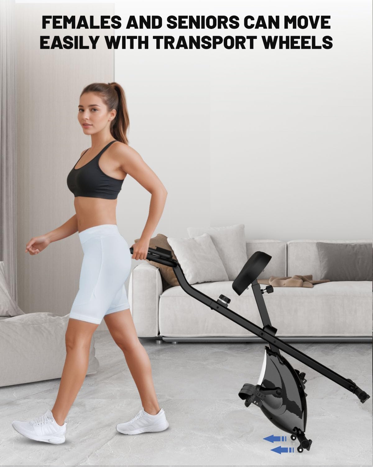 3 IN 1 FOLDING EXERCISE BIKE : Folding exercise bike has three movement modes: upright, horizontal and folding, which can help you exercise different muscle groups. Stable triangular structure that can support up to 300 pounds of trainers, safe and easy to assemble
