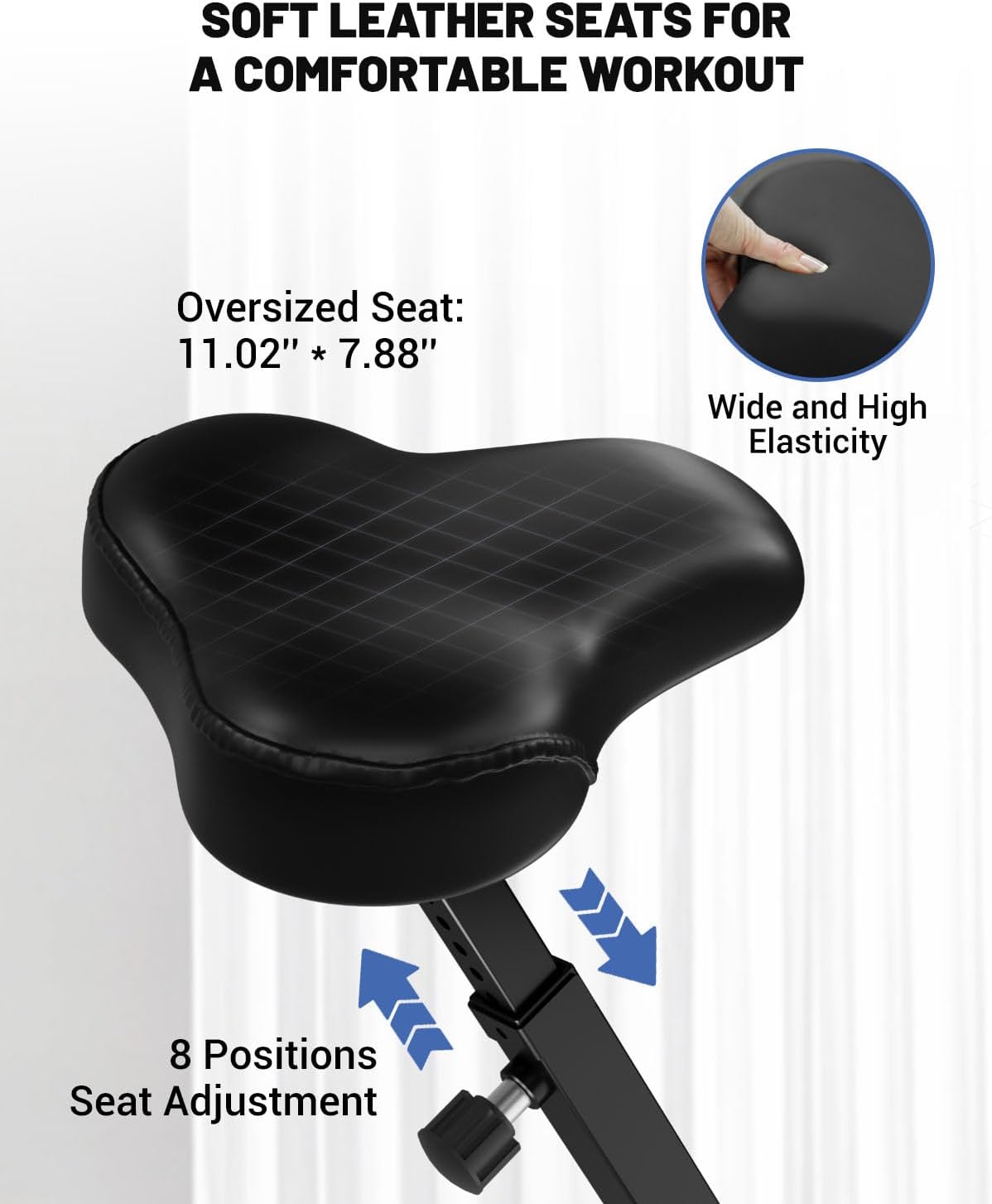 SPACIOUS AND SOFT CUSHIONS: Our seats have been enlarged and widened to an overall size of 11.02 “* 7.88”. And with a new and upgraded leather design, with thick and soft sponge cushions, so that you can exercise without any stress