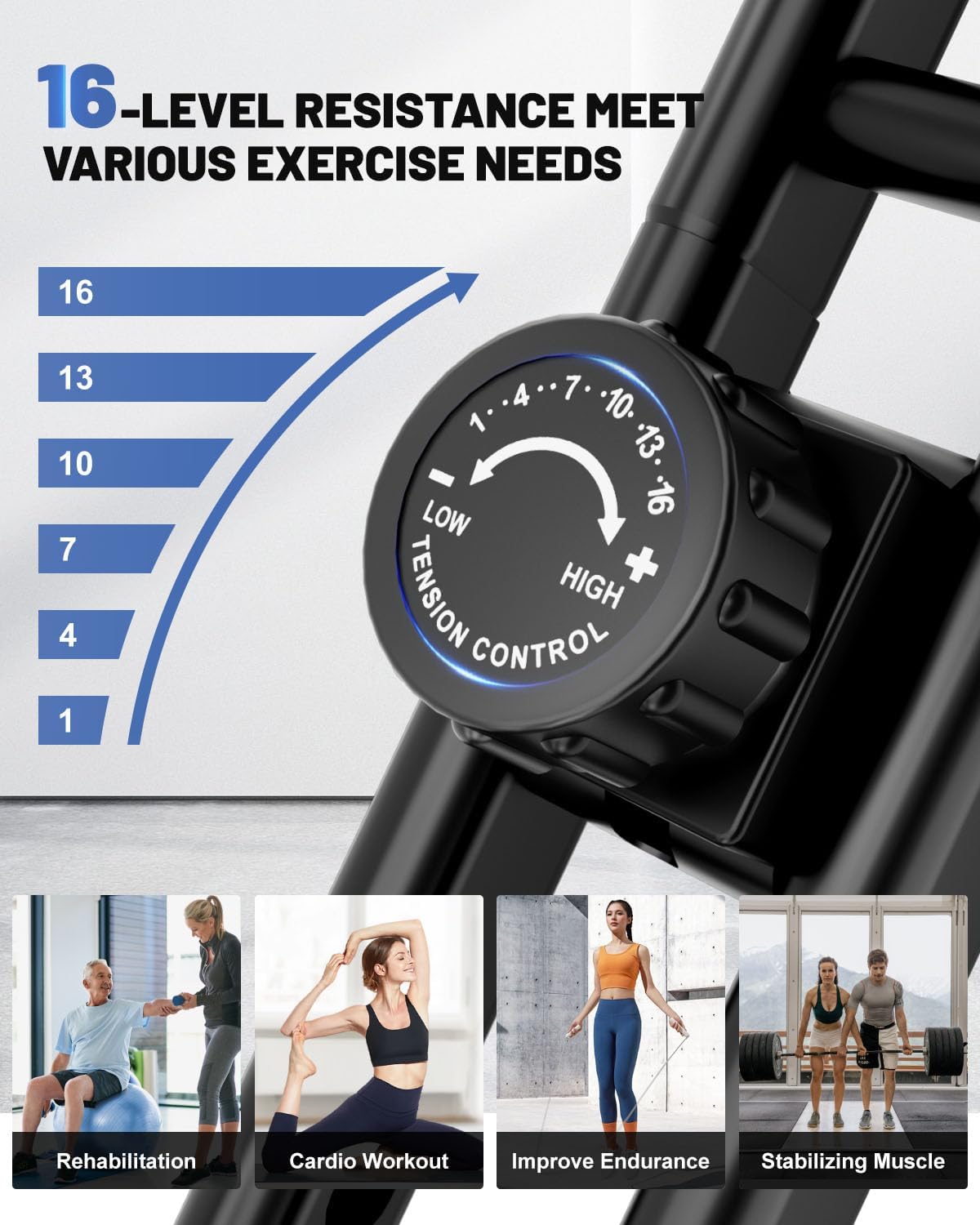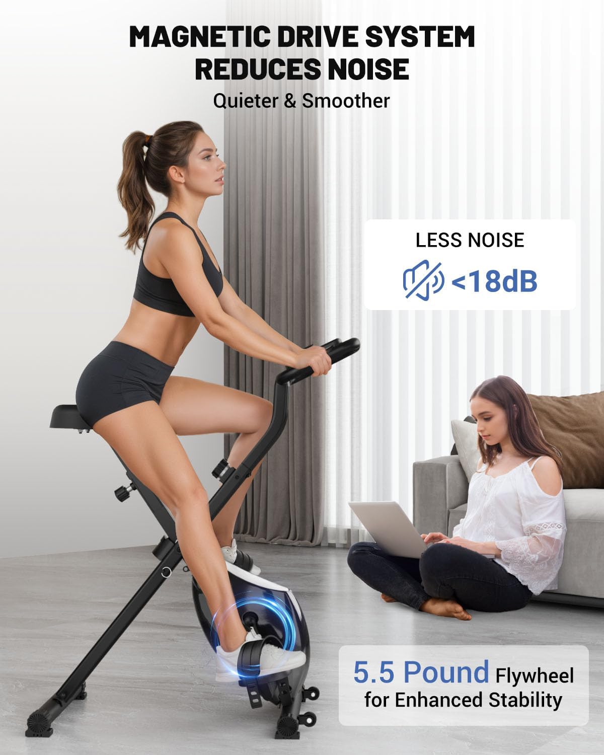 16-LEVEL ADJUSTABLE MAGNETIC RESISTANCE : The foldable stationary bike gives you more options for adjustable weight, and our quiet, smooth magnetic flywheel ensures that you exercise at home or at the office without abnormal noise. 16 level resistance adjustment for more challenging training