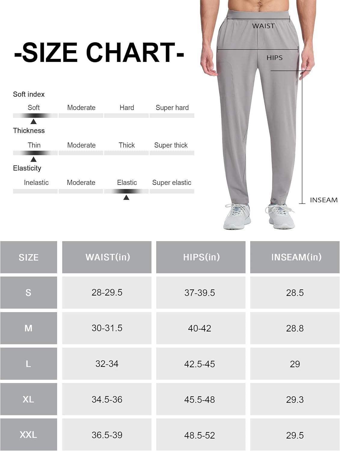 Comfort fit: These men’s pants feature a tapered legs design that is slim fit, snug but not restrictive during movement, ensuring a sleek and elongated leg silhouette