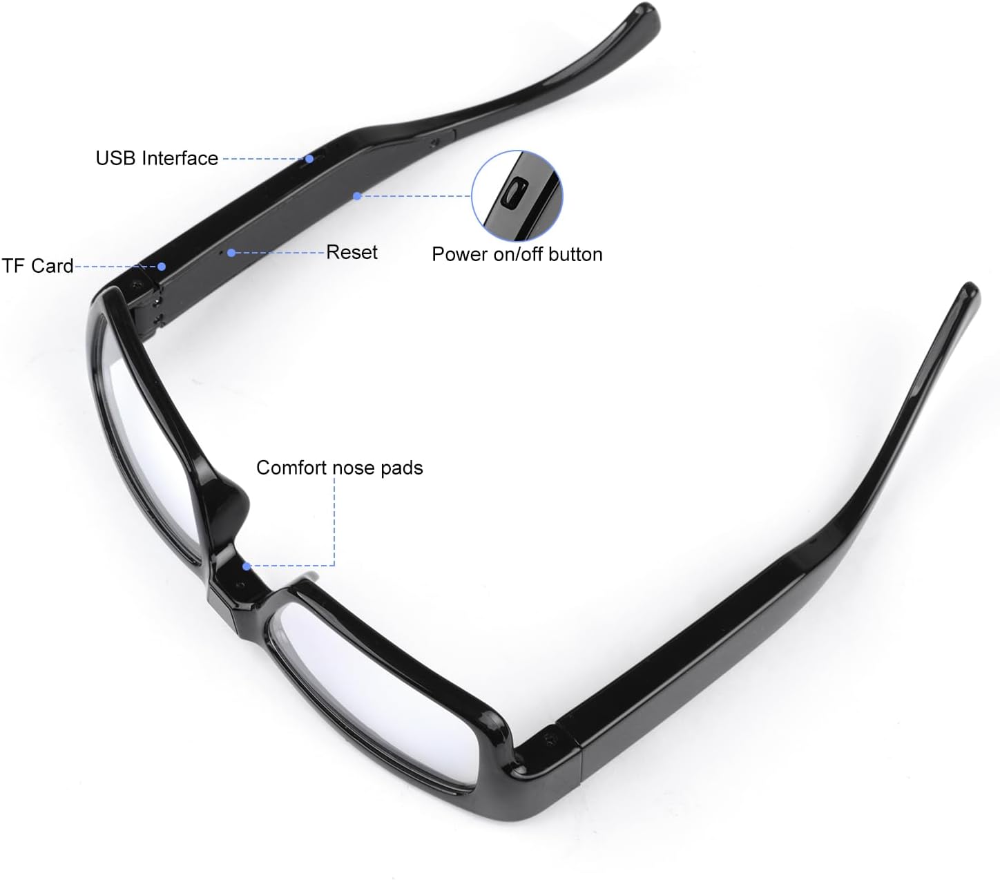 Wide Angle and HD Lens: HD 1080P camera and 80-degree wide-angle lens Glasses with cameras can video hiking, driving, and watching live games.You can connect your camera glasses to your computer
