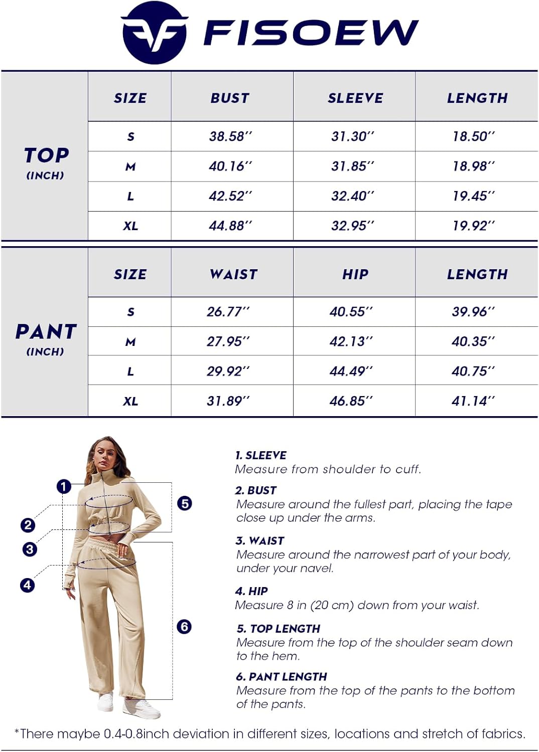 Fisoew Womens Zip Up Long Sleeve 2 Piece Outfits