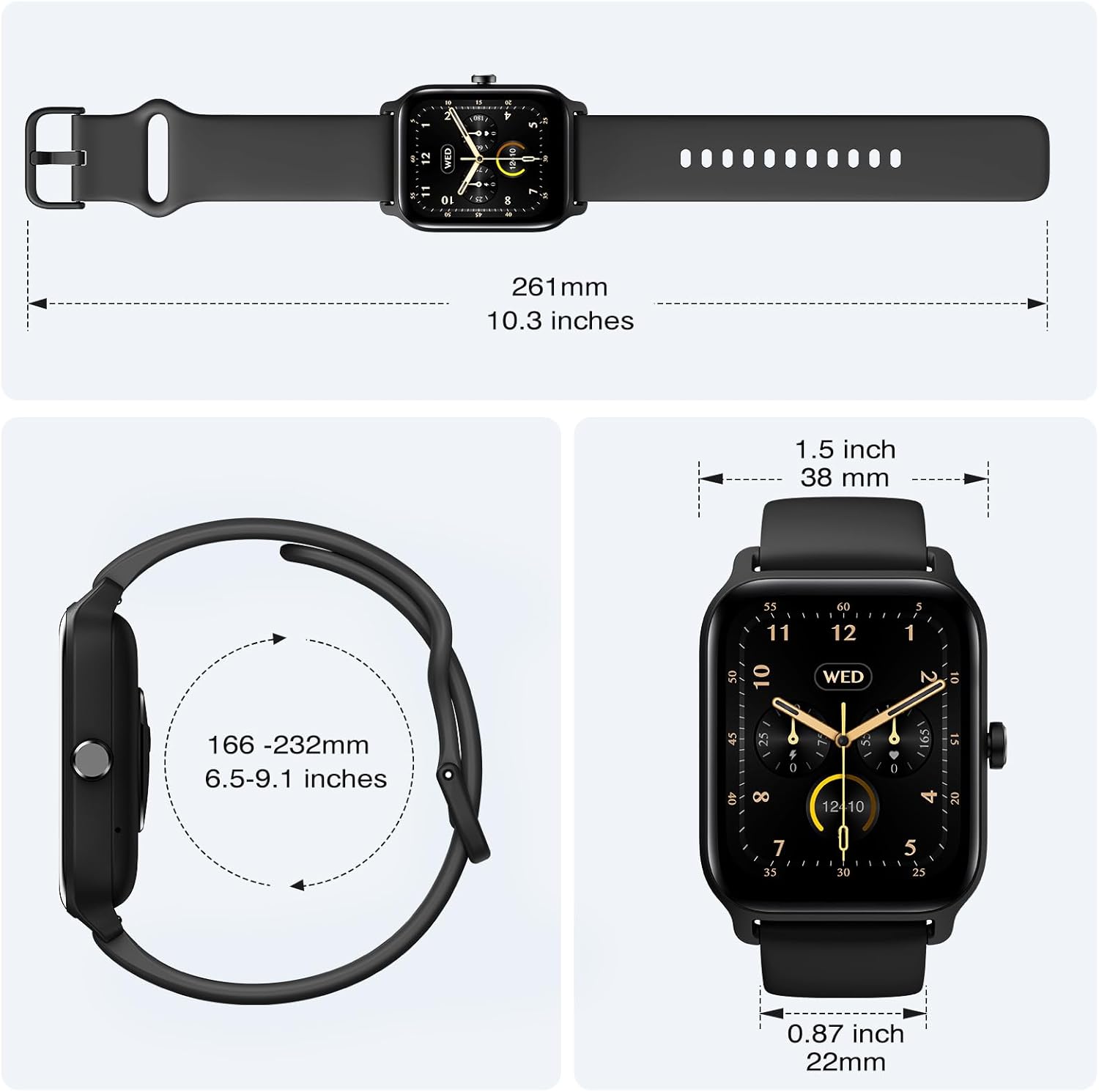 【Alexa Voice Control & Bluetooth Calling】Work with Amazon Alexa, you can ask questions, control music playback, check the weather, set alarms and timers, and more by speaking to your watch. With Bluetooth 5.3, you can also answer/make clear calls directly from your smart watches when your phone is out of reach. (THE WATCH CAN NOT SEND MESSAGES, or TEXT BACK, Bluetooth distance 8-10 meters).