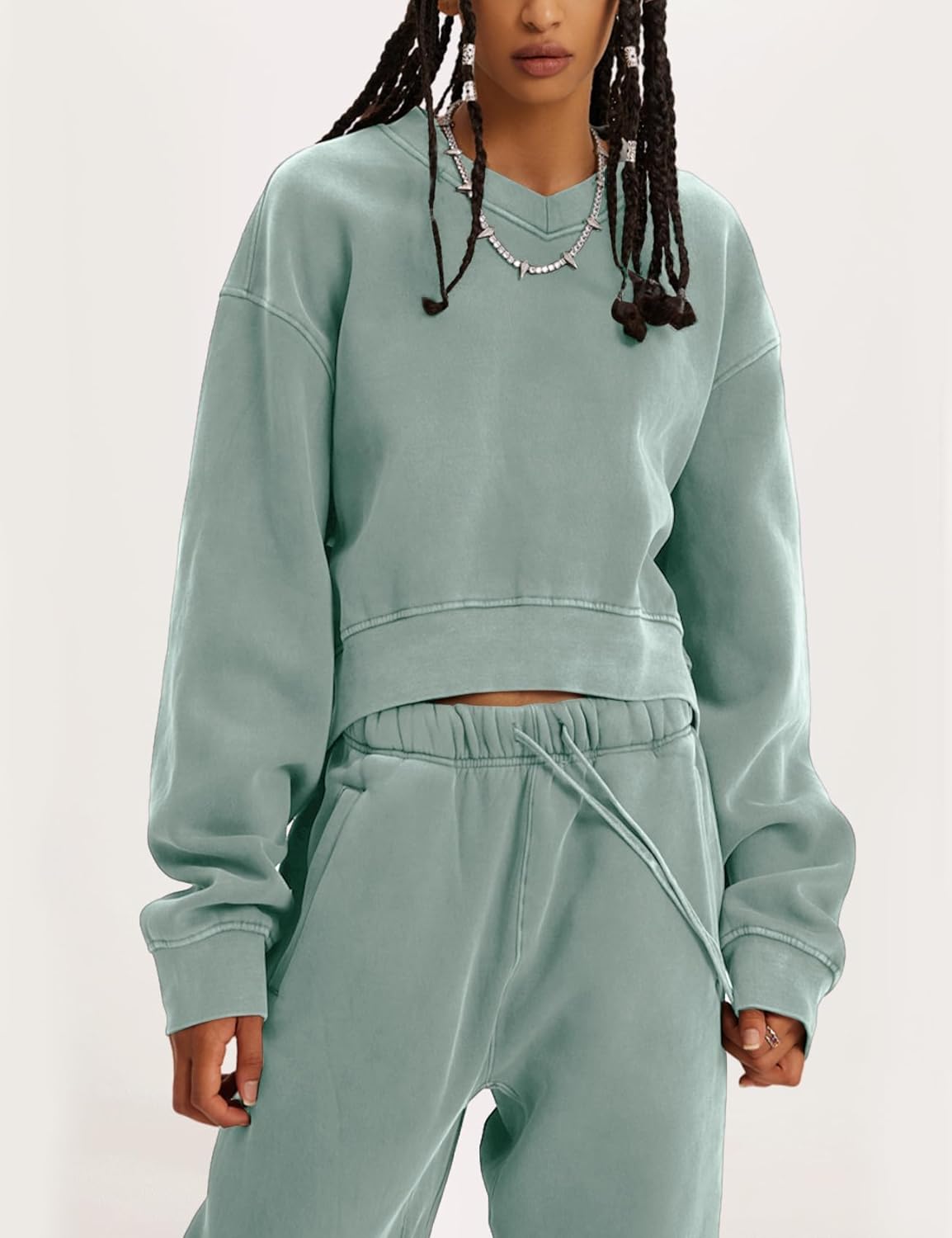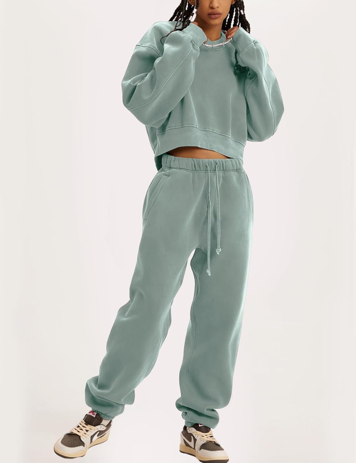 Womens jogging sets for women 2 piece contain cropped pullover top sweatshirt *1 and jogger sweatpants *1