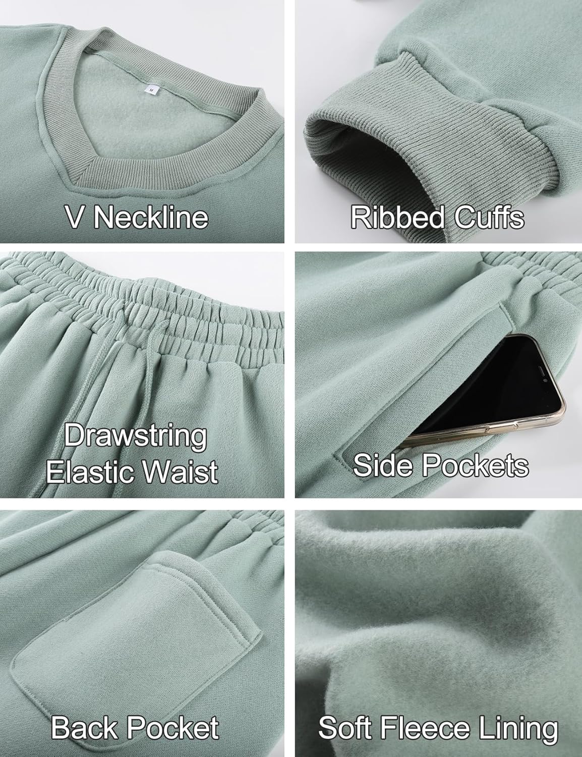 Soft, lightweight & breathable material, womens Sweatsuits 2 Piece, keep you cozy and comfortable on cold days, sweatshirt and sweatpants set women give you a cozy and comfy feeling.