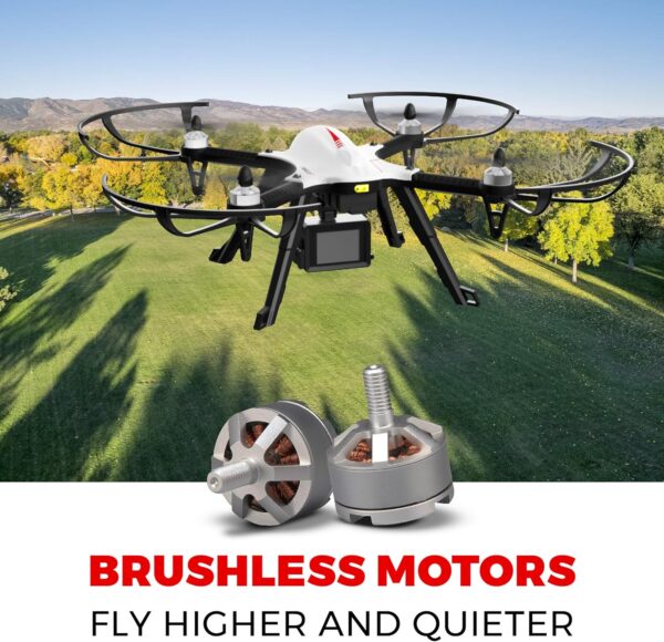 Comprehensive GoPro Drone Kit: This drone, modeled as MJX Bugs 3, ensures smooth navigation with its 2.4 GHz remote (batteries not included). The kit comes packed with (2) 1800mAh Li-Po batteries, a balance charger, 4 additional propellers, and 4 propeller guards for enhanced protection.