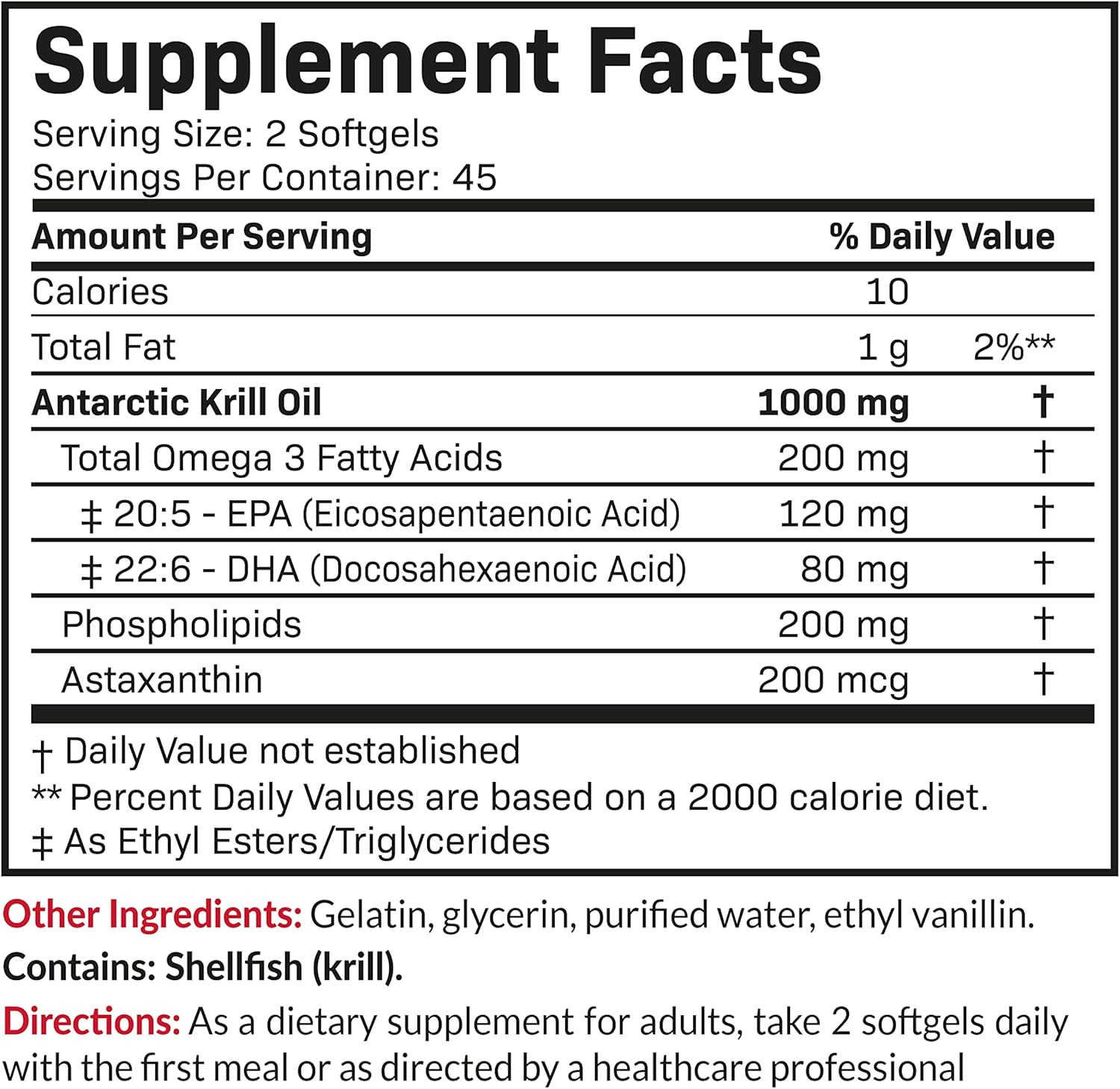 Premium Antarctic Krill Oil: We only use superior sourced krill that is harvested in the waters of Antarctica. Providing 1000 mg per serving (2 softgels).