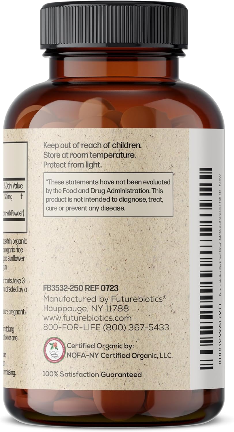 Ashwagandha is known as an Adaptogenic herb, as it helps the body cope and adapt to various stresses that occur in daily life. Futurebiotics Organic Ashwagandha provides equivalent to 2100mg (from 525mg of 4:1 extract) per serving (3 Organic Tablets) of high-quality Ashwagandha herb. Organic Ashwagandha helps to support a healthy stress response, maintain healthy cortisol levels, support a positive mood, and promote brain health.* Free of GMOs, Gluten and Soy, Futurebiotics Organic Ashwagandha is carefully manufactured by trained professionals in our state-of-the-art facility that is located in Hauppauge, New York. Organic Ashwagandha is Vegan/Vegetarian friendly and contains no ingredients derived from animals.