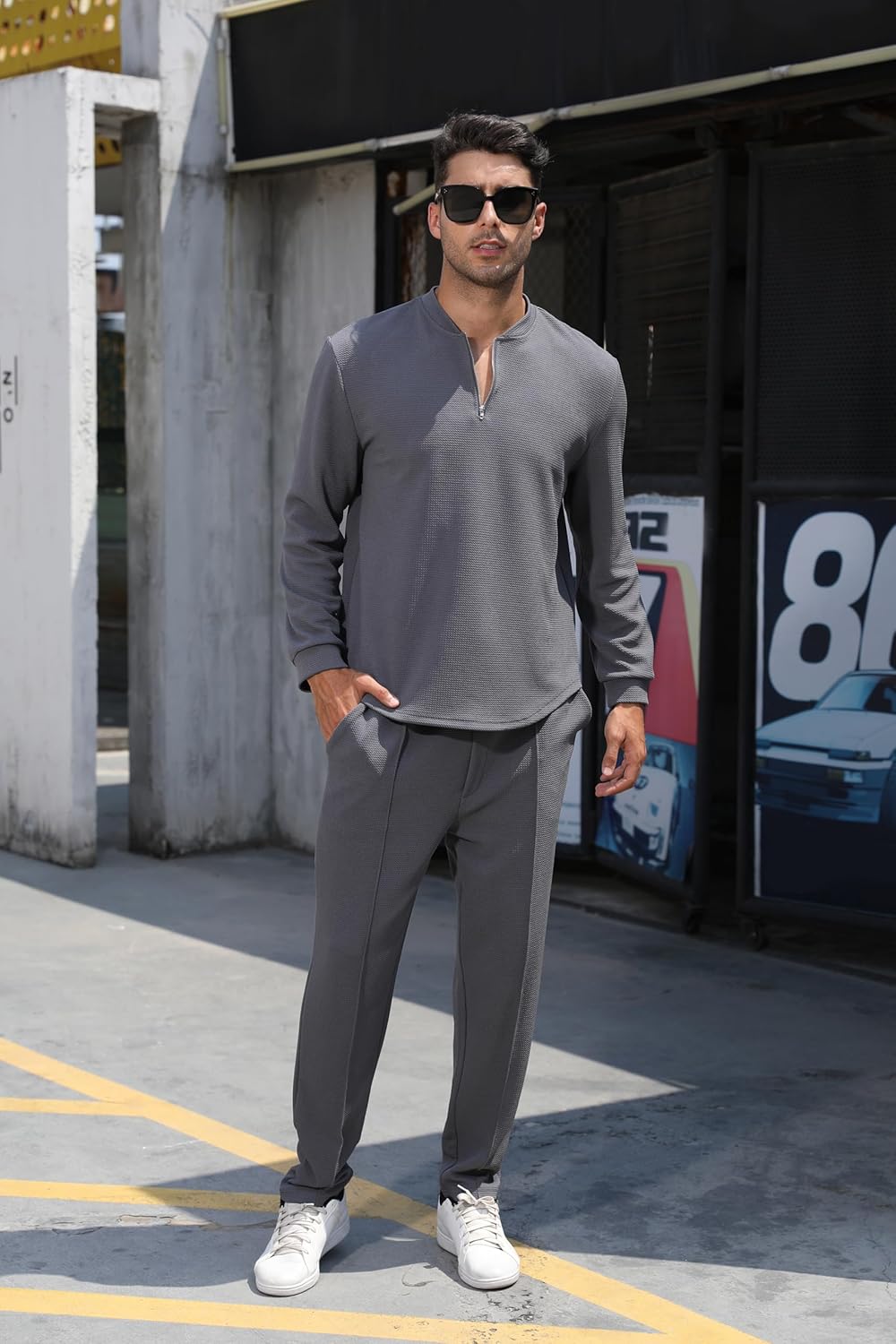 FZNHQL Men’s Casual Sweat Suit Set Tracksuit 2 Piece Henley Shirts and Long Pants