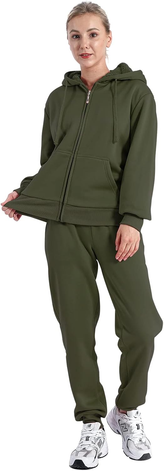 Features: 2 piece tracksuit outfits set,fleece sherpa lined, solid color, long sleeve hoodie with drawstring, front zipper pullover top, elastic waist drawstring long pants, 4 pockets, casual style.