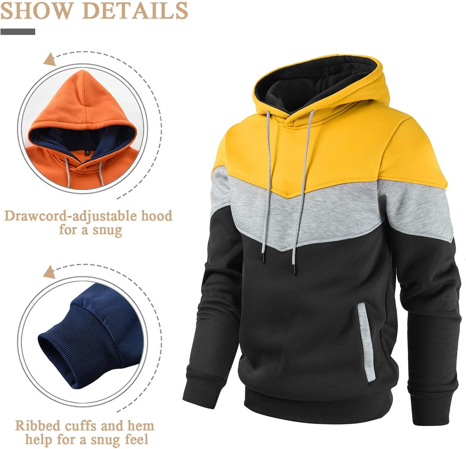 Gesean Men’s Novelty Color Block Pullover Fleece Hoodie Long Sleeve Casual Sweatshirt with Pocket