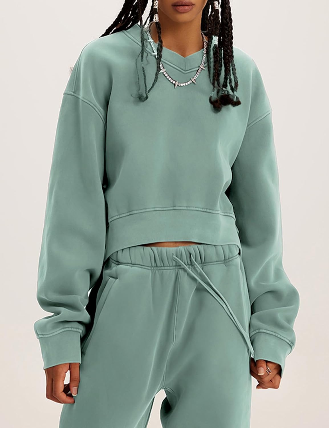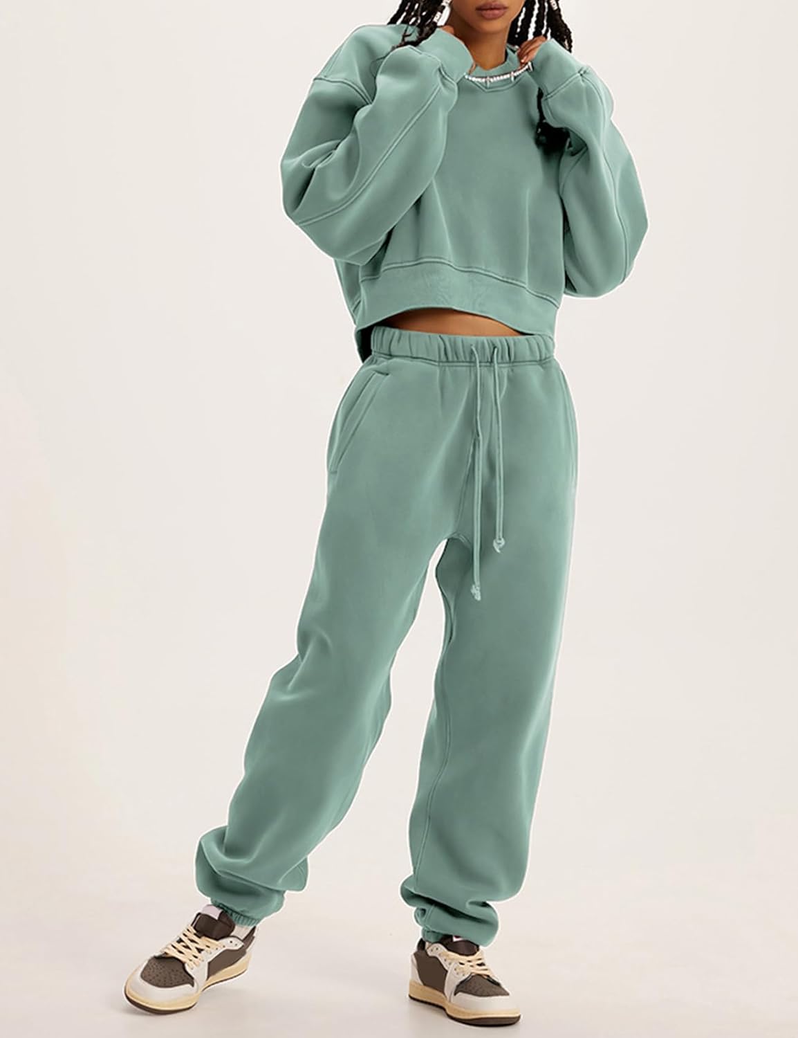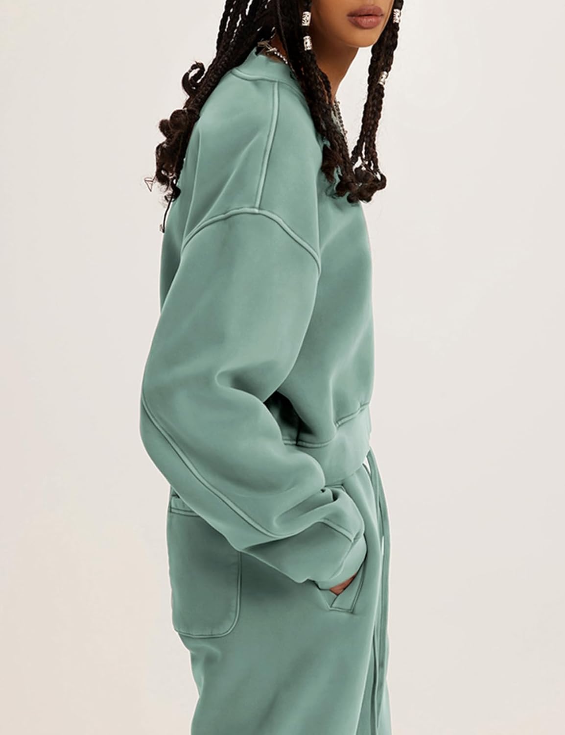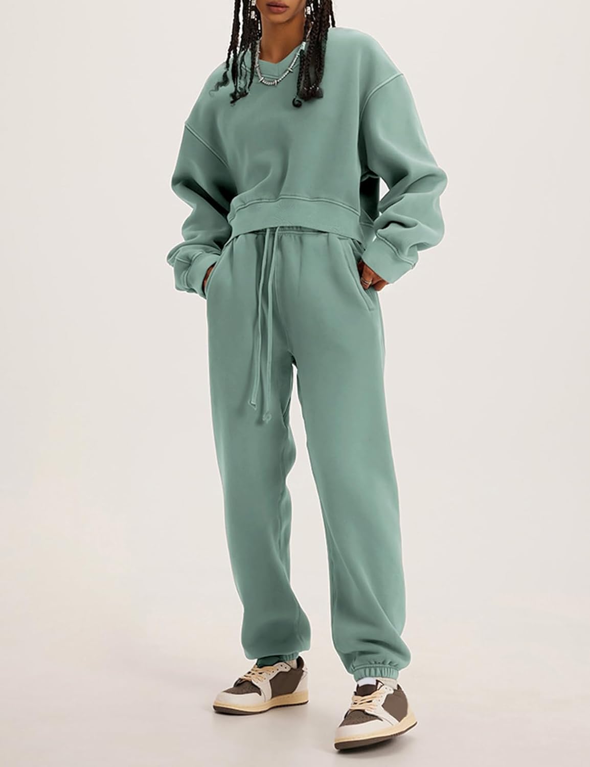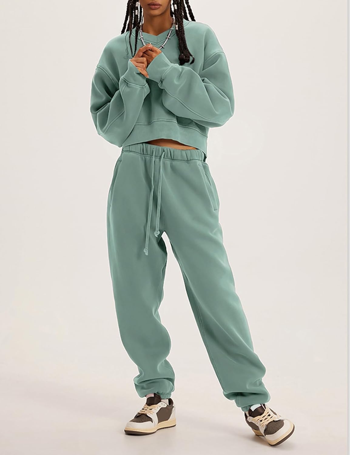 Pullover Sweatshirt and High Waisted Sweatpants Matching Set