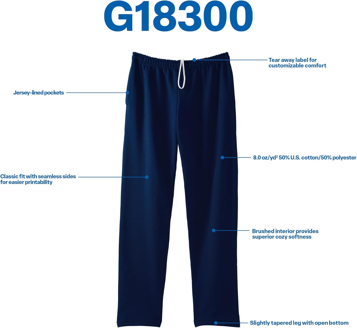 With slightly tapered legs, a differential rise for a better fit and covered elastic waistband with drawcord, the Gildan Adult Fleece Open Bottom Sweatpants with Pockets is the ultimate loungewear style. Featuring a non-pilling surface that’s great for decorating, it delivers a soft comfort that you’re sure to love.