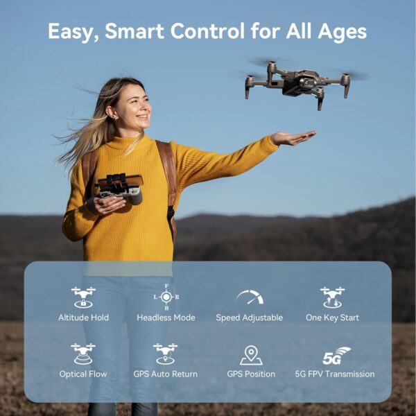 Smart and Easy to Control: This rc drone equipped with smart functions such as Optical Flow, Altitude Hold provide very precise and stable hovering; Headless Mode, One key Start, Speed Adjustment let the drone beginners or kids control the it easily!