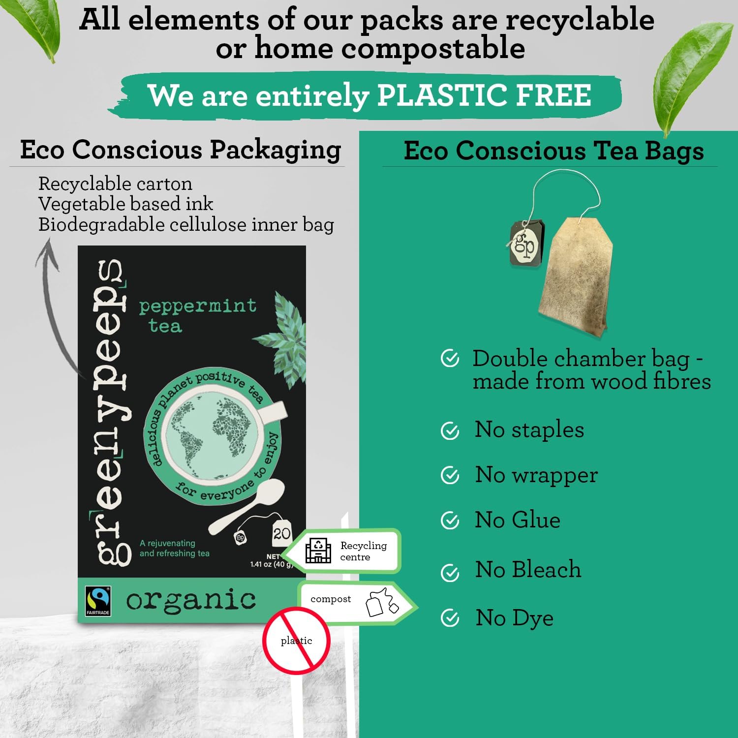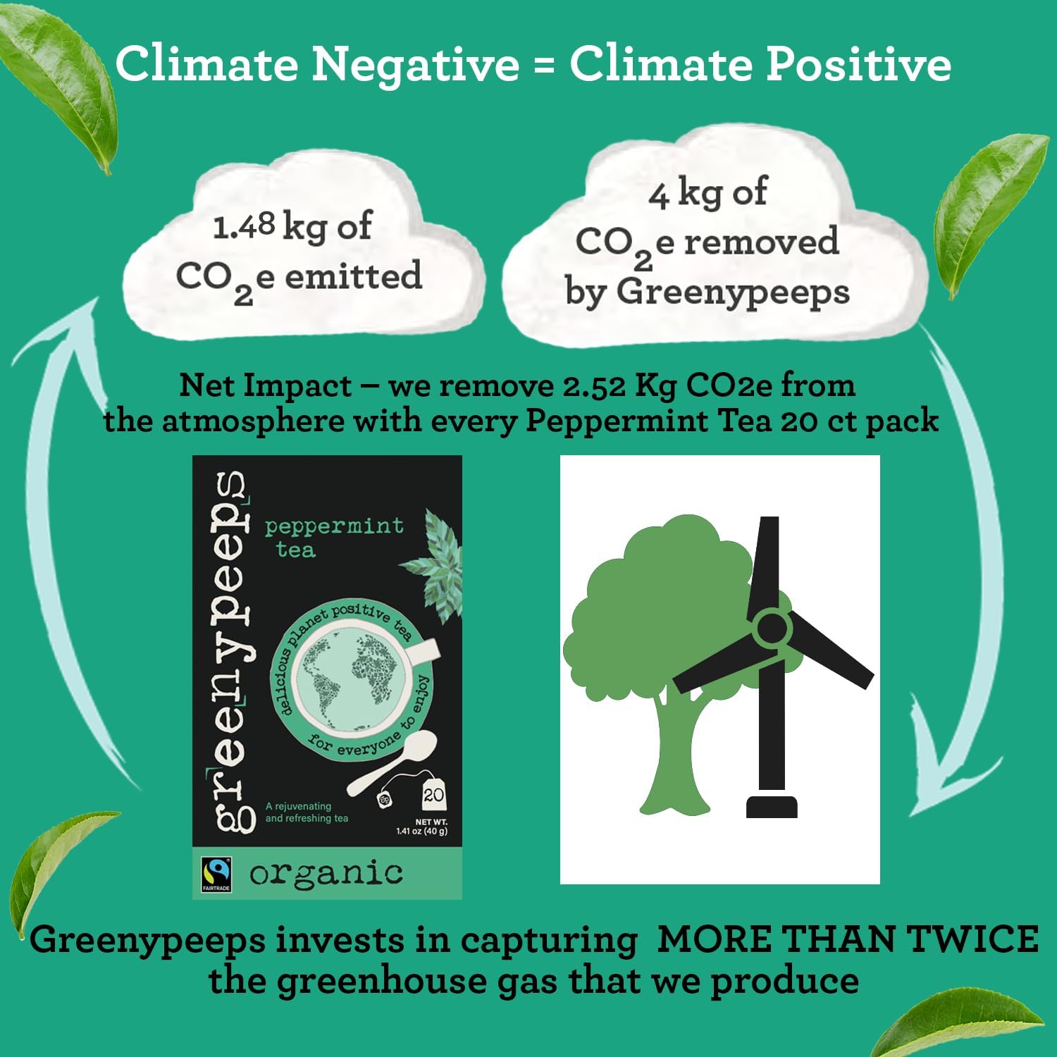 NET CARBON NEGATIVE IMPACT – When you buy a pack of this herbal mint tea you will do your part to leave the planet in a healthier condition. We invest in capturing and offsetting MORE THAN TWICE the greenhouse gas we produce, with 100% recyclable packaging and compostable tea bags.