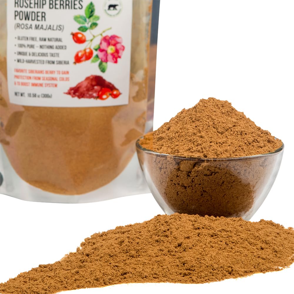 Ground Siberian Rose Hips Flour 300g Rosehips Herbal Dried Fine Powder Tea from Siberia Altai Mountains Taiga No Added Sugar Resealable Pouch