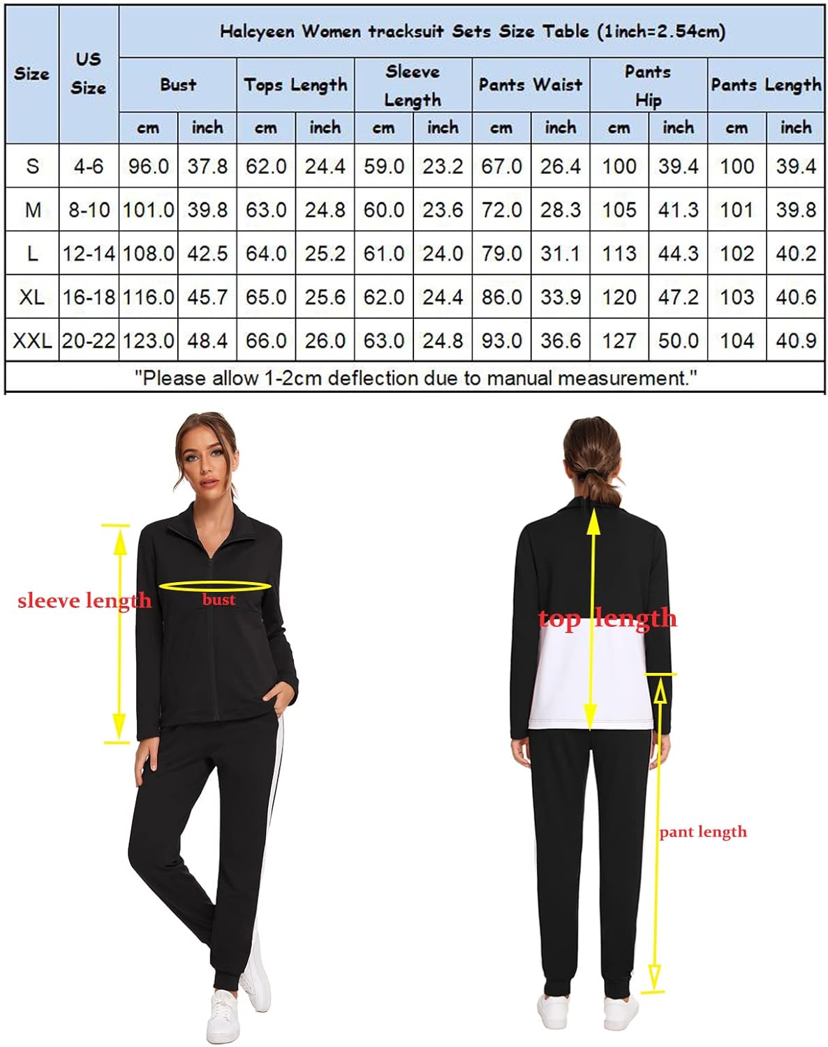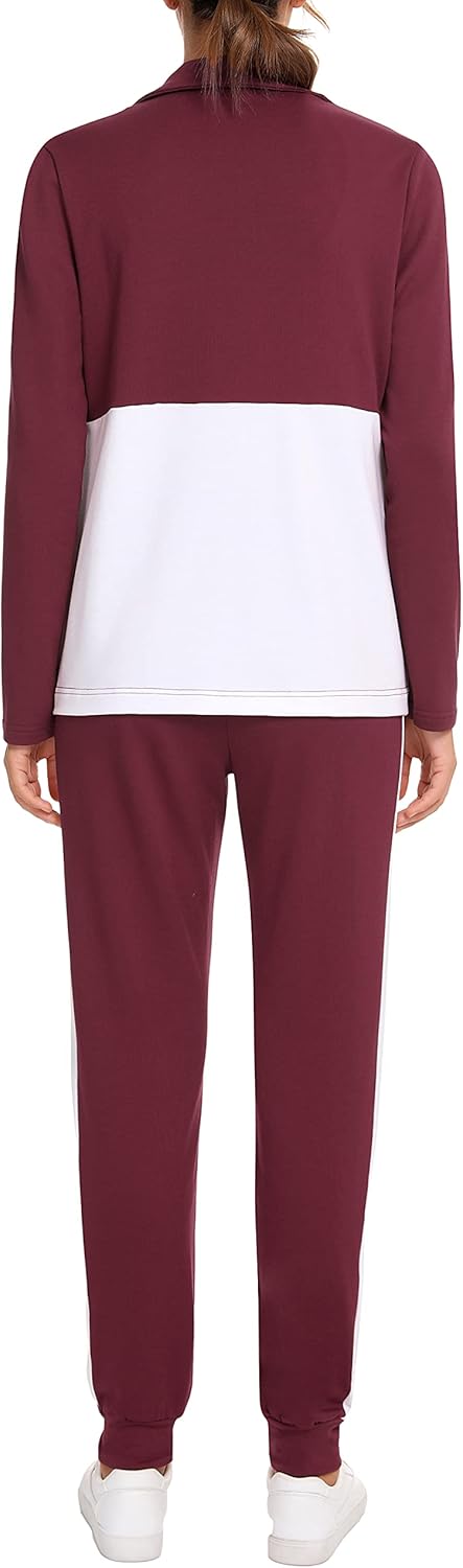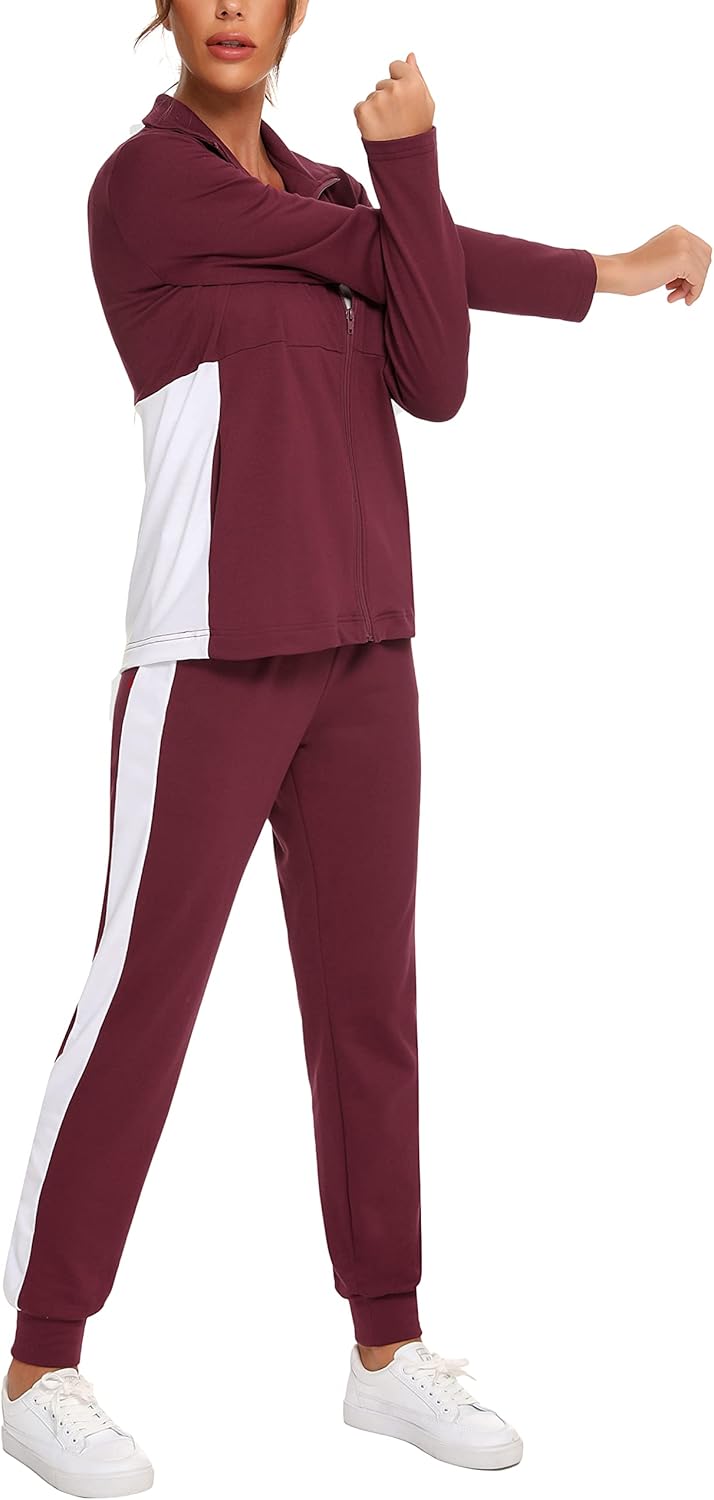 Ladies Long Sleeve Tracksuits 2 Piece Tops with Zipper and Side Striped Pants with Pockets