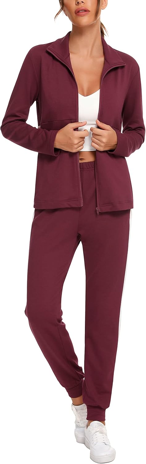 Womens Zip Up Sweatsuits Sets Casual Long Sleeve Jogging Suits Workout Gym 2 Piece Outfits With Pockets