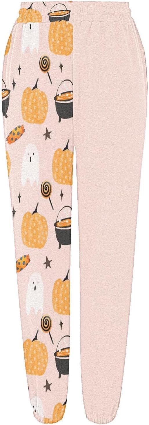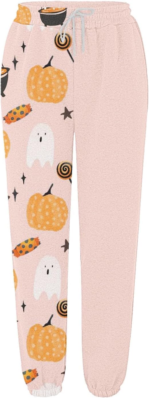 Halloween Cinch Bottom Sweatpant for Women Drawstring Pumpkin Print Fleece Jogger High Waist Wide Leg Athletic Pant