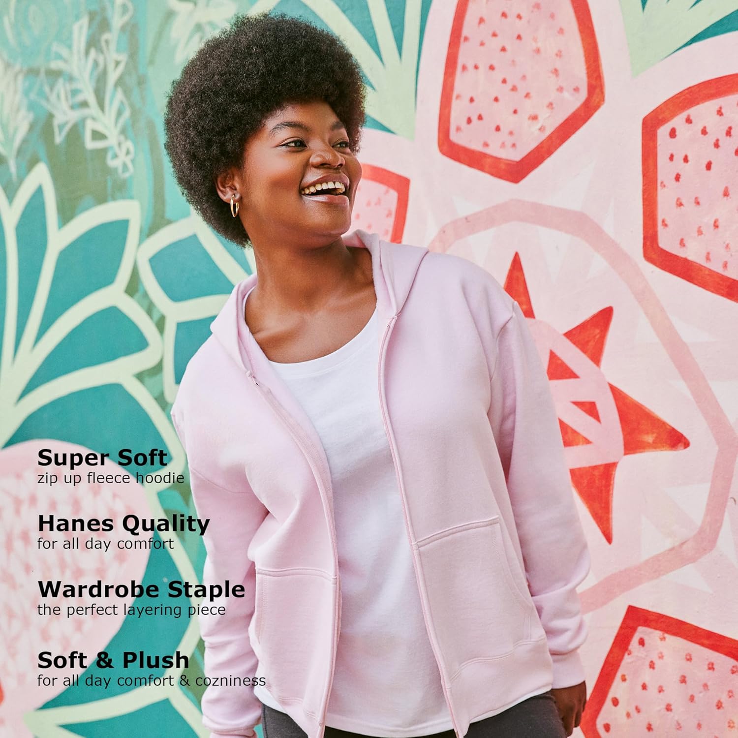 Pre or post-practice, this soft hoodie for women gives you the versatility you need and the comfort you crave. Thick fleece with a high-stitch density stays warm and cozy, so this women’s sweatshirt can be a longtime favorite. Full-zip front with a cord-free hood has a classic silhouette for easy styling, from studio to street. Ribbed cuffs and waistband stretch to move with you, and hold their shape for a perfect fit, wear after wear. Convenient front pouch pockets free up hands, letting you carry essentials close. Tag-free finish adds extra comfort to limit distractions. Throw this women’s hoodie in the washer on cold water wash and tumble dry low for easy laundering. Love this comfortable loungewear? Grab one in every color to maximize your style options.