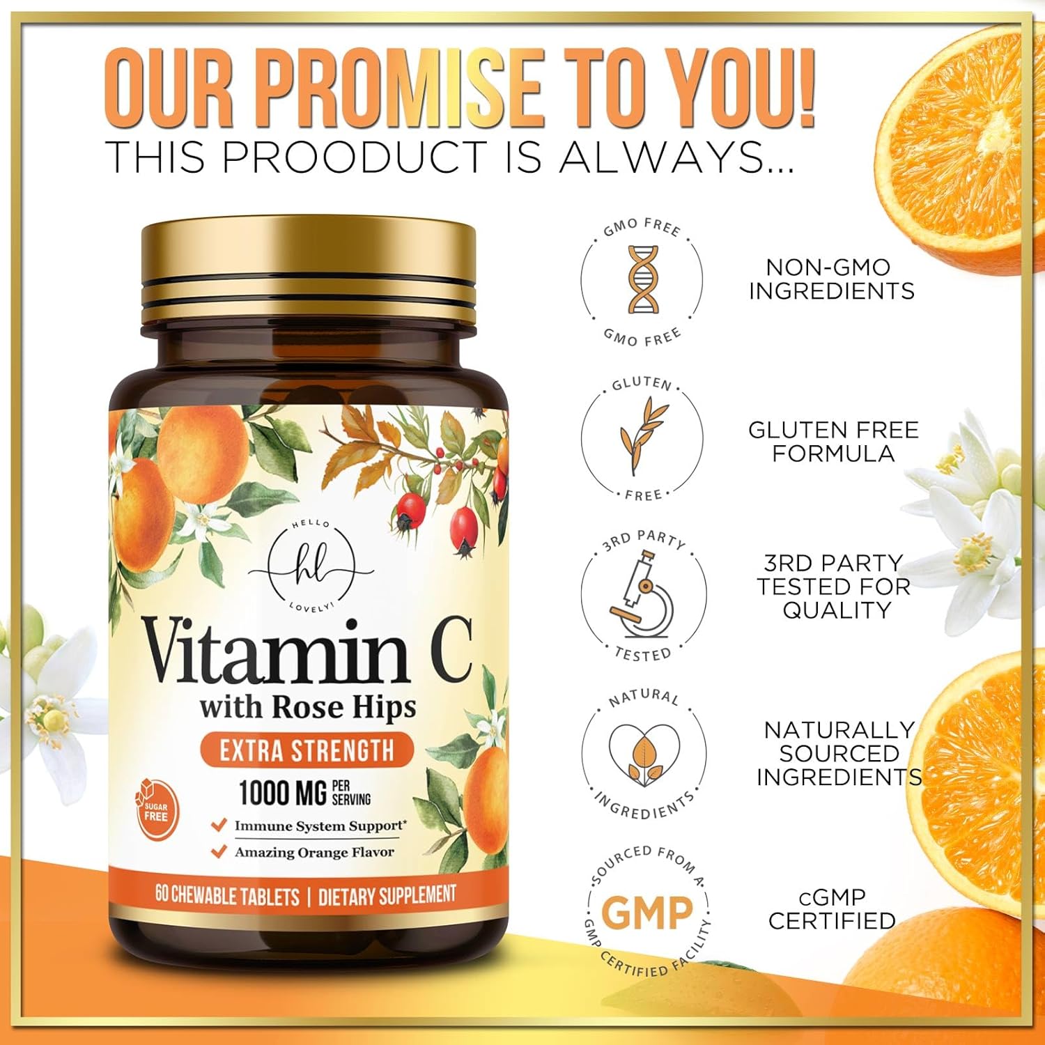 Hello Lovely! Extra Strength Vitamin C 1000 mg capsules provide powerful immune support and antioxidant protection with each chewable capsule. These Vitamin C 1000mg capsules, also known as Vitamina C, are enriched with Rose Hips and Bioflavonoids for extra benefits. Sugar-free and non-GMO, this Vit C supplement is made for those seeking a pure, high-quality option. The convenient chewable format makes it easy to incorporate Vitamin C into your daily routine. Whether you call it Vitamin C, Vitamina C, or Vitaminc, these Vitamin C pills are a trusted choice for supporting your immune system and overall wellness.