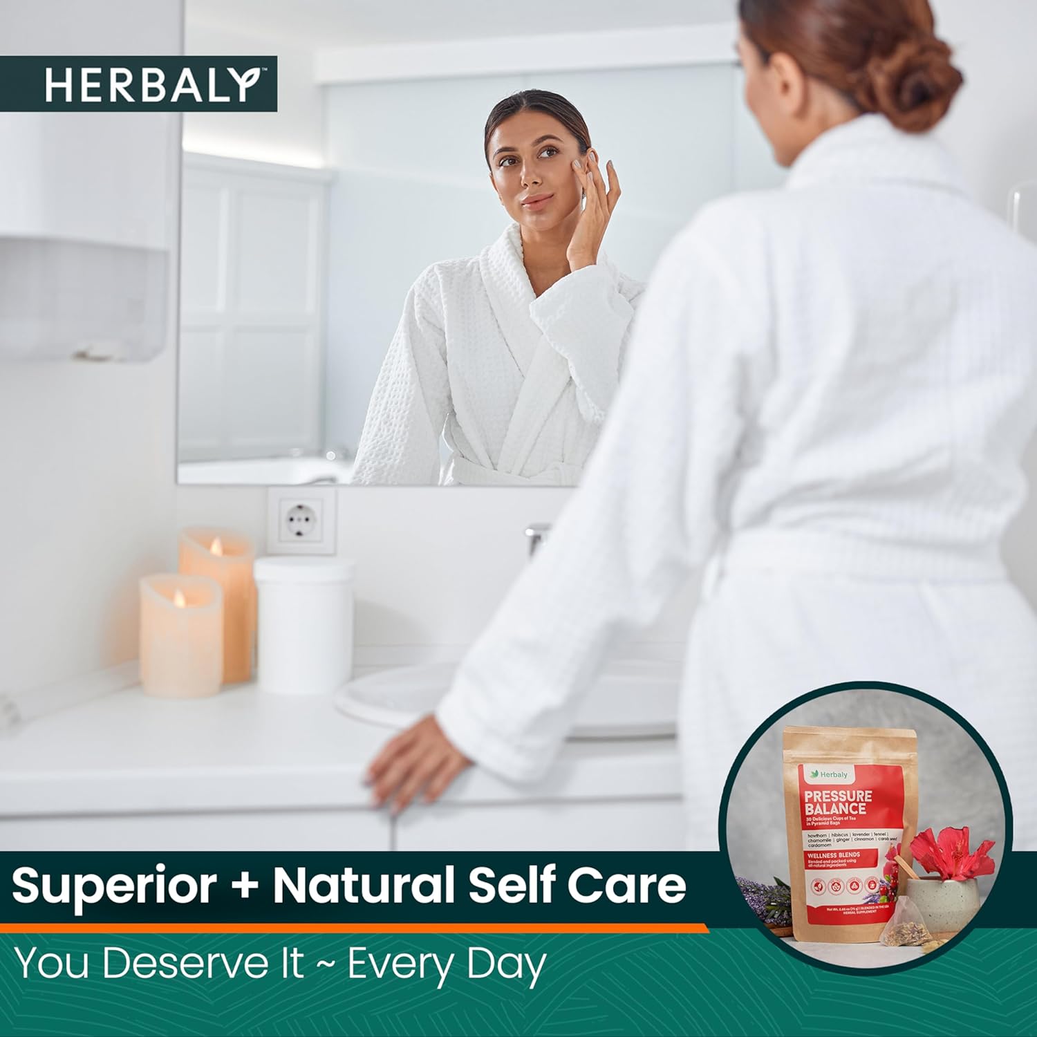 Delicious Balancing Tea: Keep pressure and overall wellness where you want them while enjoying a cup of our scrumptiously soothing balance-focused tea. Crafted from a premium selection of organic hibiscus, cardamom, hawthorn, fennel, lavender, and other holistic herbs, savor the exquisite taste and aroma as you relax with a serving to start your day. Herbaly’s all-natural teas are packaged in delicate plant-based pyramid tea sachets with 2.5 grams of goodness in each bag.